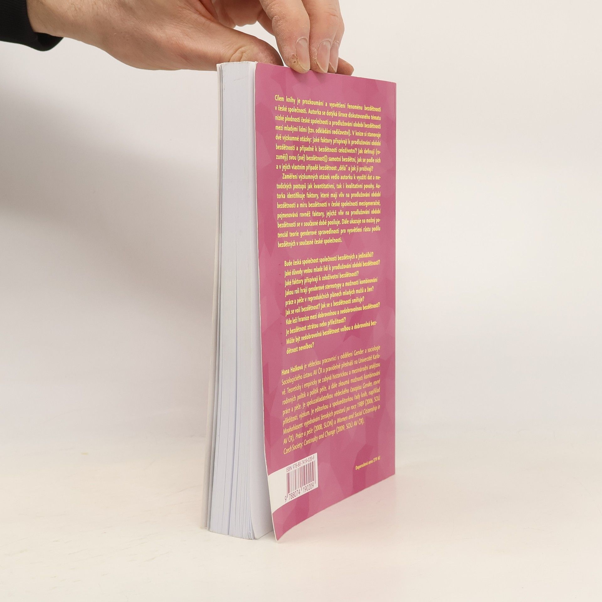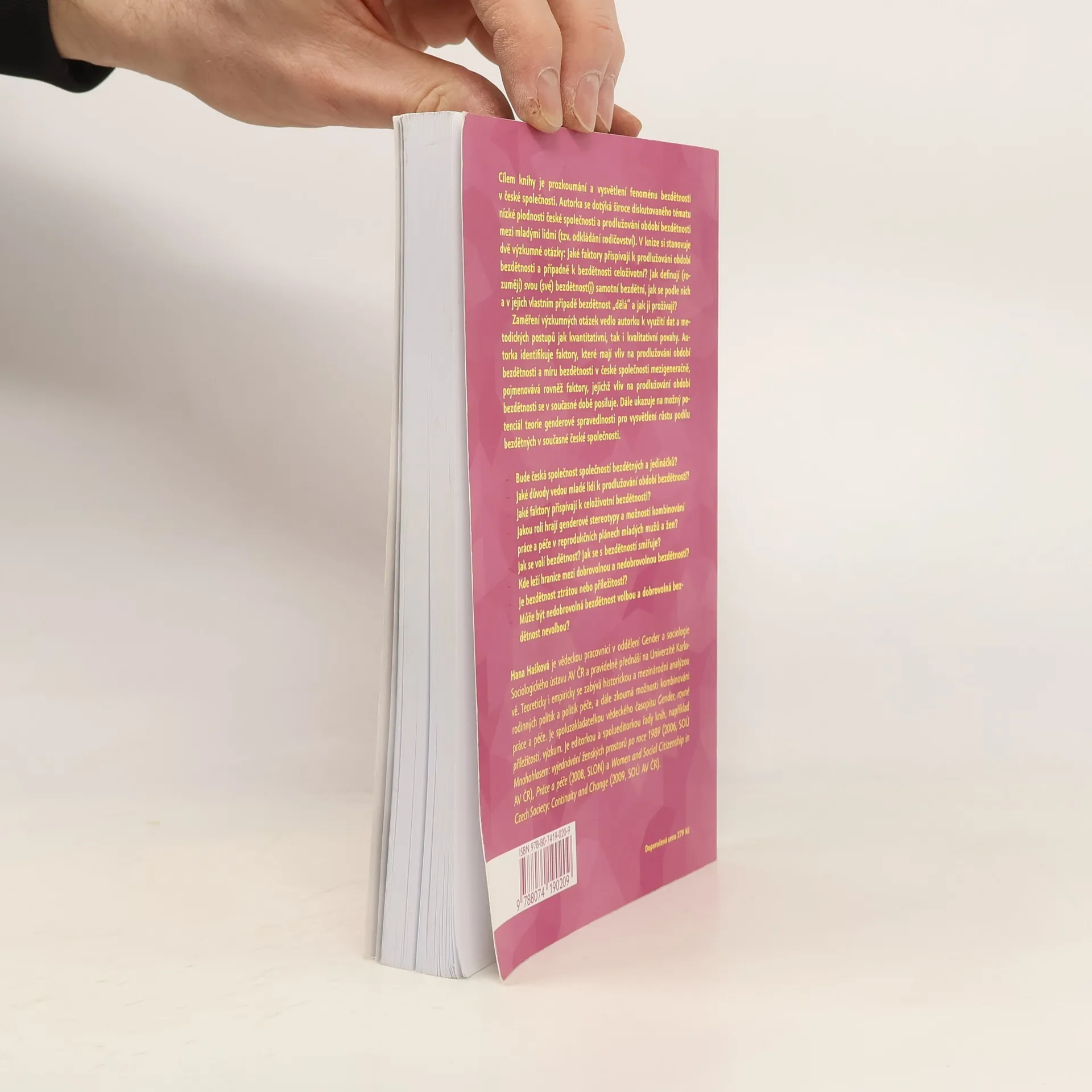 Cílem knihy je prozkoumání a vysvětlení fenoménu bezdětnosti v české společnosti. Autorka se dotýká široce diskutovaného tématu nízké plodnosti české společnosti a prodlužování období bezdětnosti mezi mladými lidmi (tzv. odkládání rodičovství). V knize si stanovuje dvě výzkumné otázky: Jaké faktory přispívají k prodlužování období bezdětnosti a případně k bezdětnosti celoživotní? Jak definují (rozumějí) svou (své) bezdětnost(i) samotní bezdětní, jak se podle nich a v jejich vlastním případě bezdětnost "dělá" a jak ji prožívají? Zaměření výzkumných otázek vedlo autorku k využití dat a metodických postupů jak kvantitativní, tak i kvalitativní povahy. Autorka identifikuje faktory, které mají vliv na prodlužování období bezdětnosti a míru bezdětnosti v české společnosti mezigeneračně, pojmenovává rovněž faktory, jejichž vliv na prodlužování období bezdětnosti se v současné době posiluje. Dále ukazuje na možný potenciál teorie genderové spravedlnosti pro vysvětlení růstu podílu bezdětných v současné české společnosti.