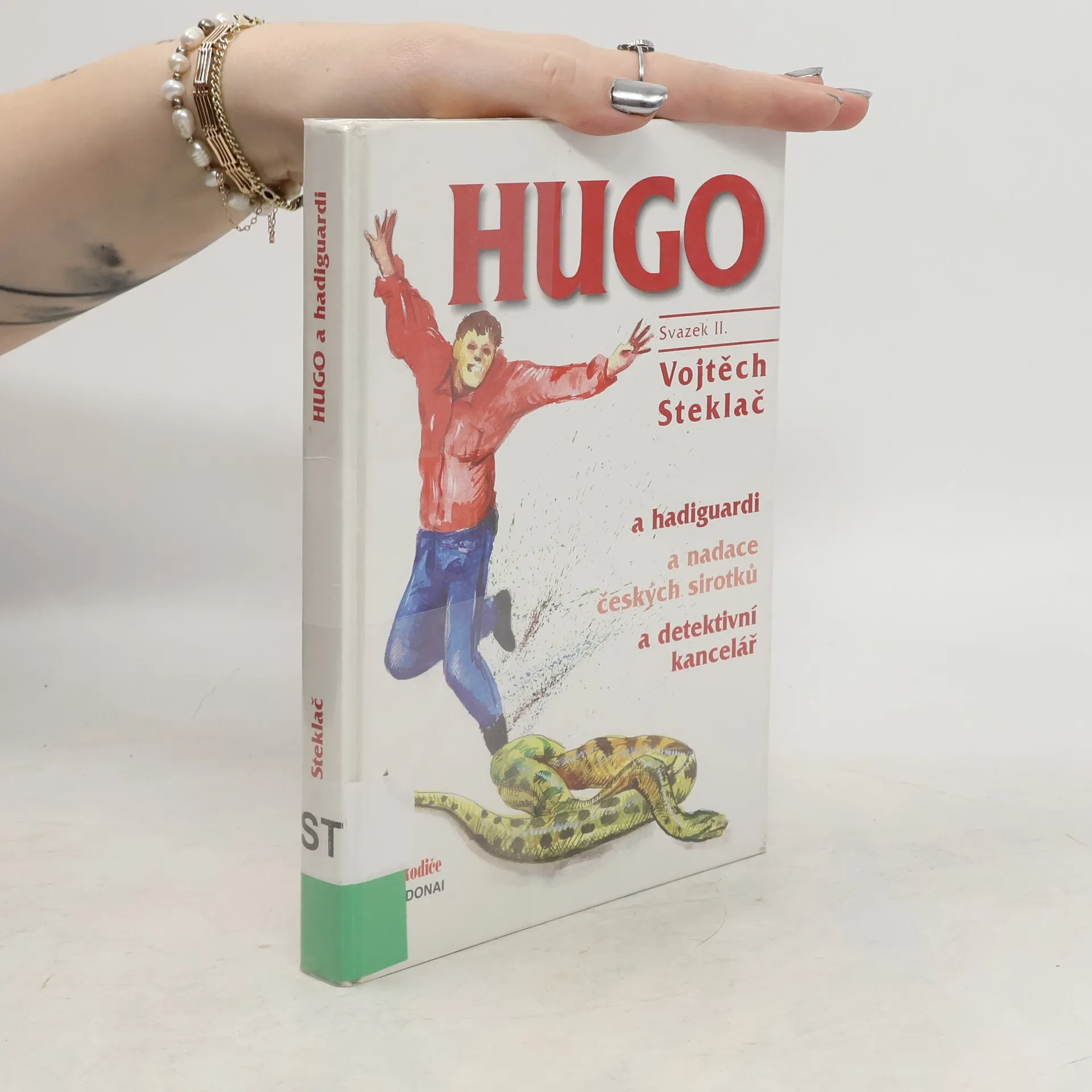" Jako první se pustil do práce Eliáš. Jeho jemná technika obtáčení kolem těla rychle slavila úspěch. Tak co, pane Kubíček ..... Hadiguardi, nadace českých sirotků a detektivní kancelář jsou hlavními účastníky děje této pokračovací knihy.