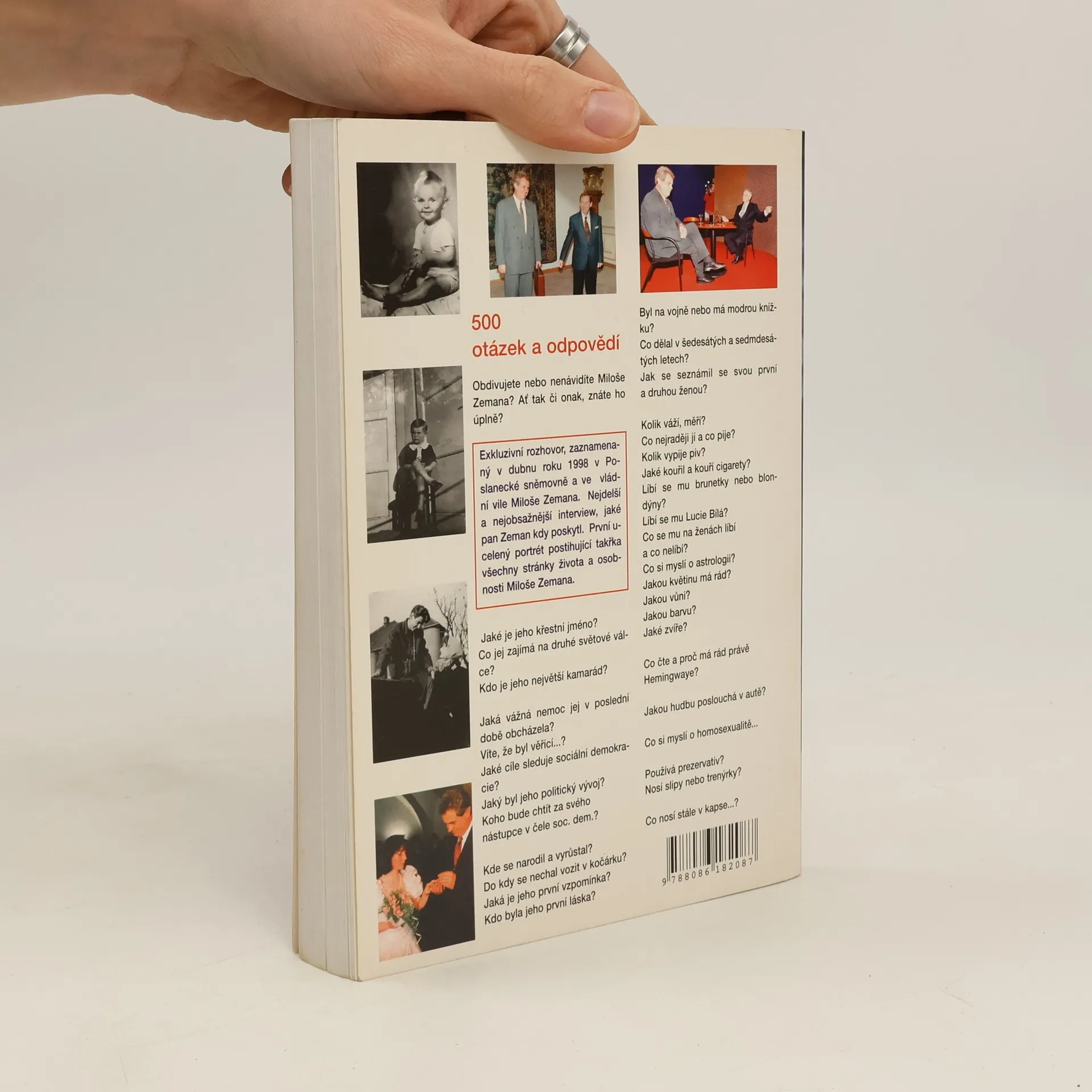 Exkluzivní rozhovor, zaznamenaný v dubnu roku 1998 v Poslanecké sněmovně a ve vládní vile Miloše Zemana. Nejdelší a nejobsažnější interview, jaké pan Zeman kdy poskytl. První ucelený portrét postihující takřka všechny stránky života a osobnosti Miloše Zemana.
