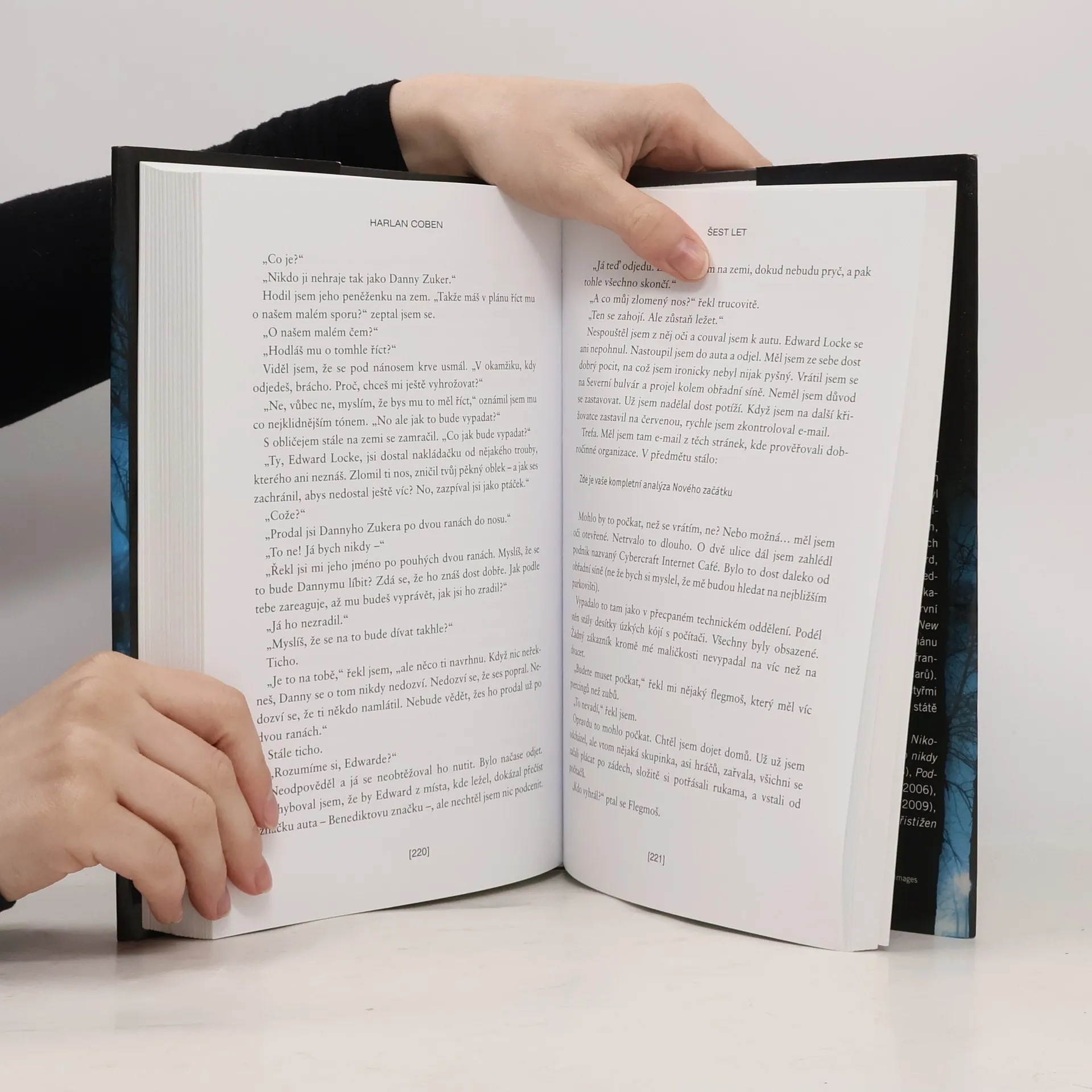 Šest let uplynulo od chvíle, kdy Jake Fisher viděl, jak si Natalie, jeho jediná, osudová láska, bere jiného muže. Šest let dodržel slib, že ji nechá na pokoji, a trápil se mučivými představami, jak Natalie žije se svým manželem Toddem. Po šesti letech náhodou narazí na oznámení o Toddově úmrtí, neodolá a vydá se na pohřeb. Doufá, že tam uvidí jeho manželku – ale vdova po Toddovi není Natalie… Jakákoli snaha najít tu, co mu kdysi zlomila srdce, pro Jake znamená odhalit krutá tajemství i bolestivé lži, ale především riskovat vlastní život. Více než 60 milionů prodaných výtisků, 25 publikovaných thrillerů, 41 jazyků, v nichž vycházejí – Harlan Coben je stálicí na celosvětovém knižním bestsellerovém nebi. Společnost Paramount Pictures chystá filmovou adaptaci Šesti let s Hughem Jackmanem v titulní roli.