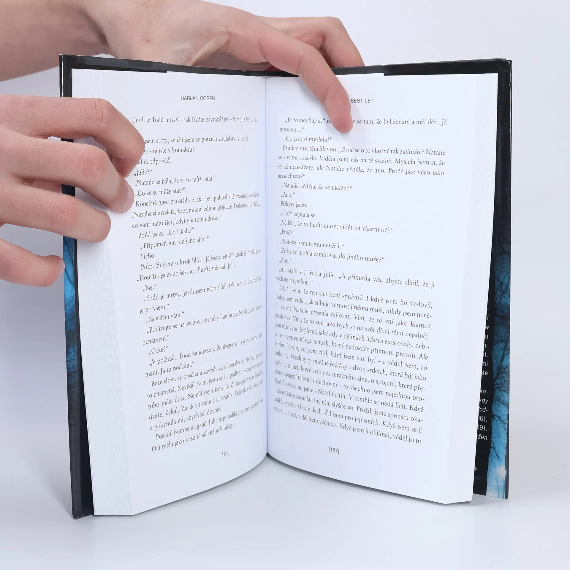 Šest let uplynulo od chvíle, kdy Jake Fisher viděl, jak si Natalie, jeho jediná, osudová láska, bere jiného muže. Šest let dodržel slib, že ji nechá na pokoji, a trápil se mučivými představami, jak Natalie žije se svým manželem Toddem. Po šesti letech náhodou narazí na oznámení o Toddově úmrtí, neodolá a vydá se na pohřeb. Doufá, že tam uvidí jeho manželku – ale vdova po Toddovi není Natalie… Jakákoli snaha najít tu, co mu kdysi zlomila srdce, pro Jake znamená odhalit krutá tajemství i bolestivé lži, ale především riskovat vlastní život. Více než 60 milionů prodaných výtisků, 25 publikovaných thrillerů, 41 jazyků, v nichž vycházejí – Harlan Coben je stálicí na celosvětovém knižním bestsellerovém nebi. Společnost Paramount Pictures chystá filmovou adaptaci Šesti let s Hughem Jackmanem v titulní roli.
