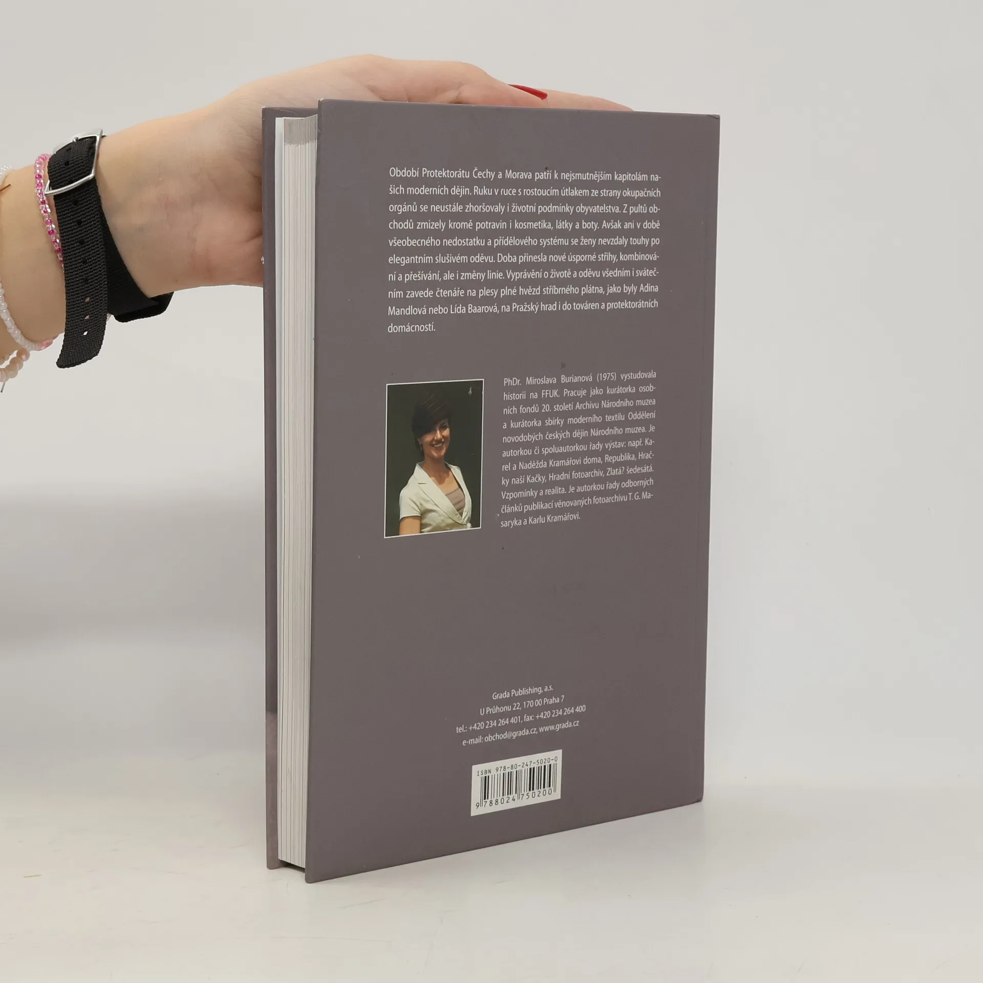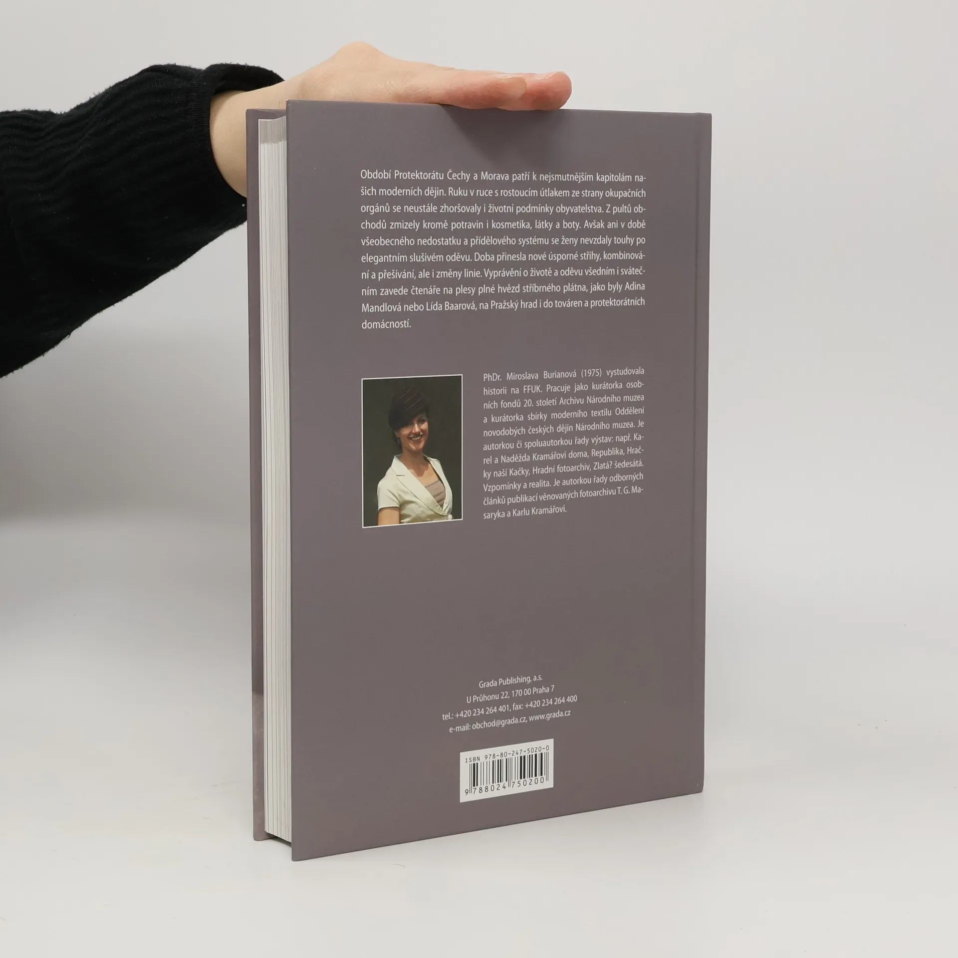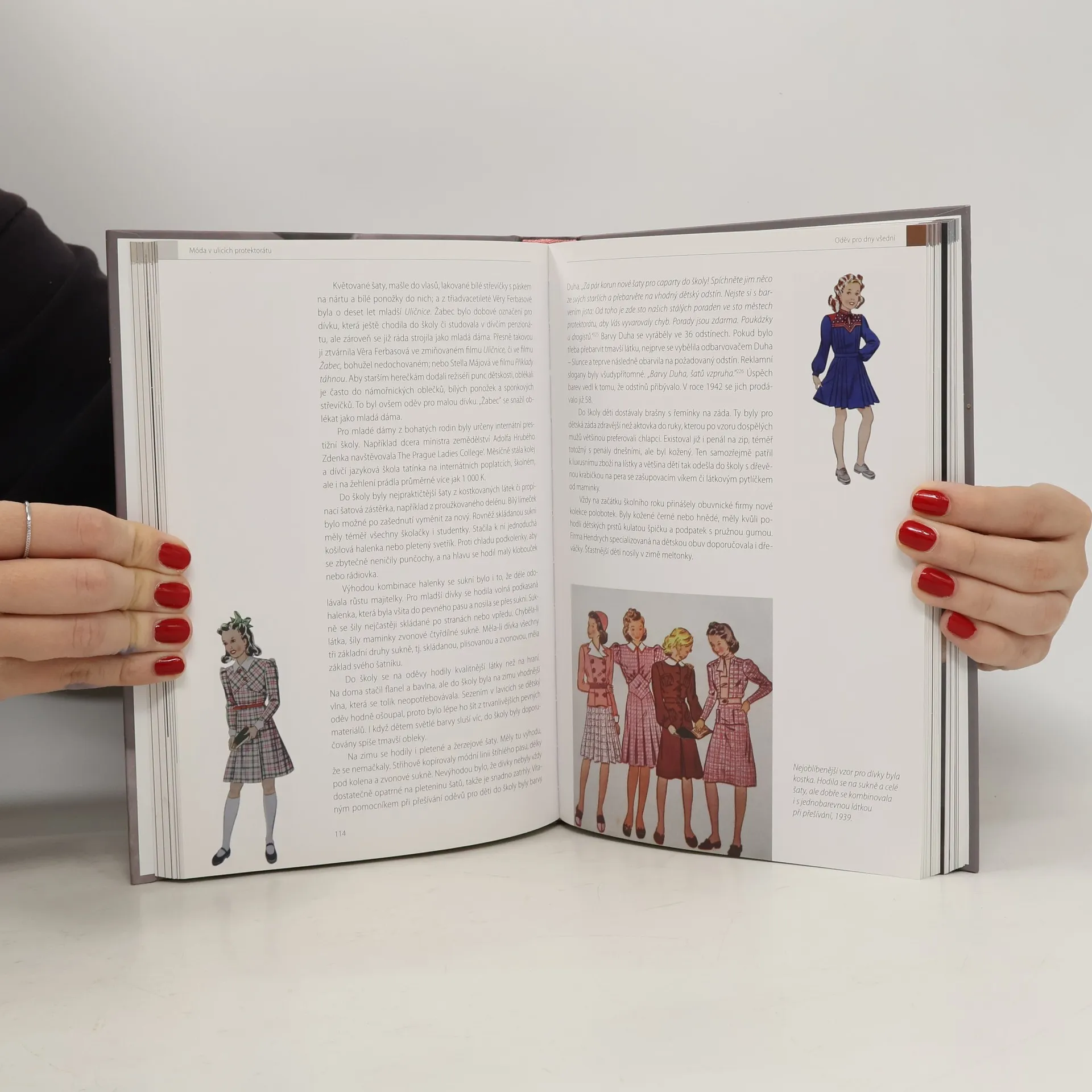 Ani v době všeobecného nedostatku a přídělového systému v období Protektorátu Čechy a Morava (1939-1945) se ženy nevzdaly touhy po elegantním slušivém oděvu. Doba přinesla nové úsporné střihy, kombinování a přešívání. Na jedné straně ženy obdivovaly v biografech velké plesové toalety a luxusní kožešiny na hvězdách stříbrného plátna, na straně druhé byly oděvy podřízeny přídělovému systému a zboží na černém trhu nebylo pro běžného obyvatele dostupné. Graficky přitažlivá publikace ukazuje jak se proměňovala módní linie, jak řešili výrobci i ženy nedostatek materiálu, ale i k jakým příležitostem se nejrůznější oděvy oblékaly. Co nosil státní prezident Emil Hácha a členové vlády, v čem se na plese objevily Lída Baarová a Adina Mandlová, ale i jak vypadaly pracovní šaty prodavačky či sportovní oděv. Kniha se čtivou formou věnuje každodenní realitě života v protektorátu, obsahuje dosud nepublikované pamětí osobností i reprodukce z dobových společenských časopisů. Móda je vizuální téma, kter é pouze v kombinaci s dobovými fotografiemi, fotografiemi sbírkových předmětů, reklamou, ale hlavně vynikajícími dobovými módními kresbami umožní čtenářům udělat si konkrétní představu o eleganci, kterou období protektorátu navazovalo na první republiku.