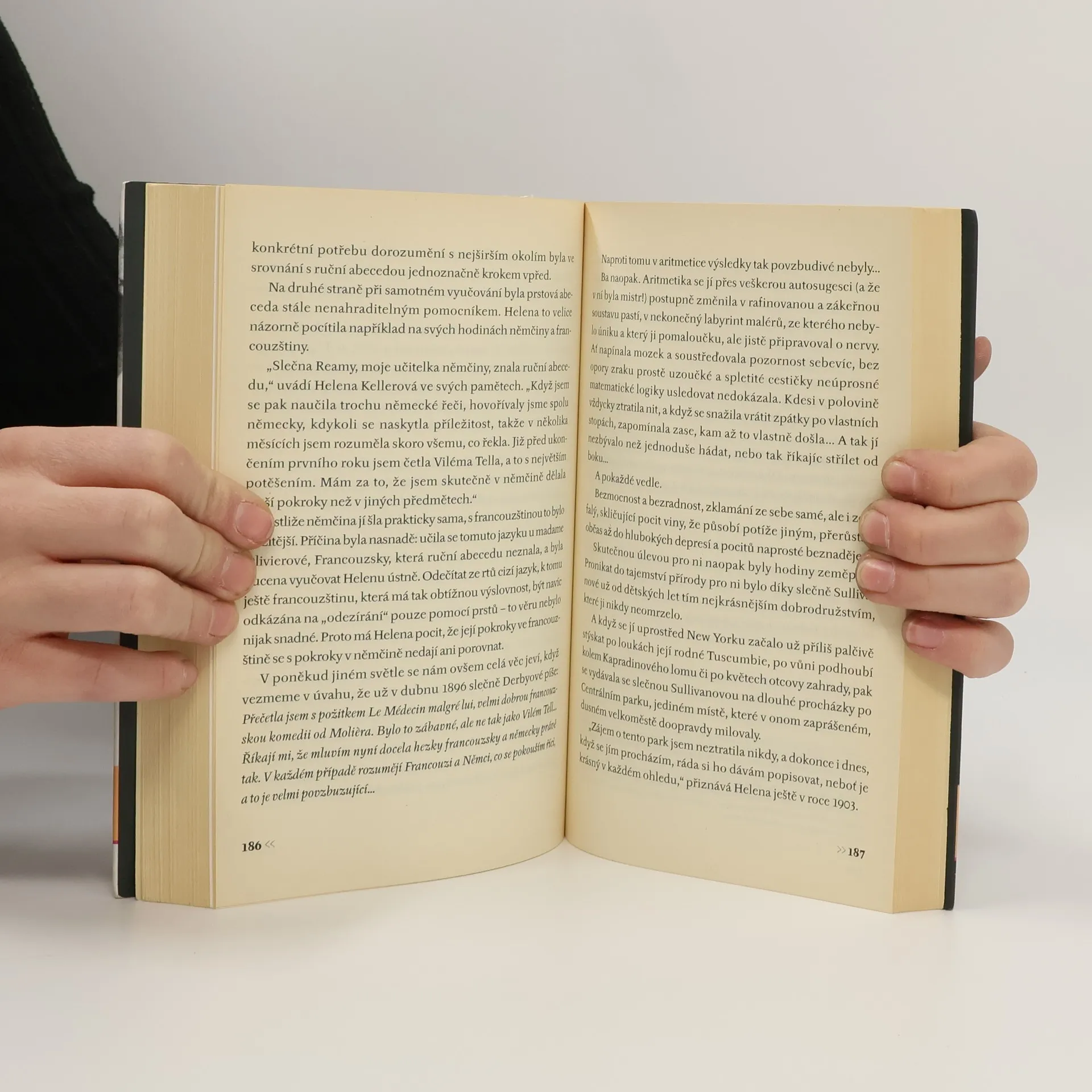 Příběh hluchoslepé Američanky, která tmu a ticho proměnila v nesmrtelnost. Po těžké chorobě, kterou Helena prodělá uprostřed druhého roku svého života, jí z pěti smyslů zůstanou jen tři: chuť, čich a hmat. Jen jimi se orientuje ve světě. Ráda jí, ráda se probíhá voňavou zahradou, vcelku bez potíží se pohybuje ve známém prostředí rodného domu, rozeznává blízké osoby, ale to je všechno! Nemá ponětí, jak vypadá krajina, jaké to je v jejím pokoji, neví, že existují barvy, zpěv a hudba, nezná tvář své matky. A přesto tahle dívka jednoho dne promuje na univerzitě v Harvardu, stane se proslulou spisovatelkou a organizátorkou pomoci smyslově postiženým lidem. Zázrak? Ne, zázraky se nedějí. To jen láska, inteligence a nezdolná vůle dokážou občas zvítězit nad beznadějností osudu.