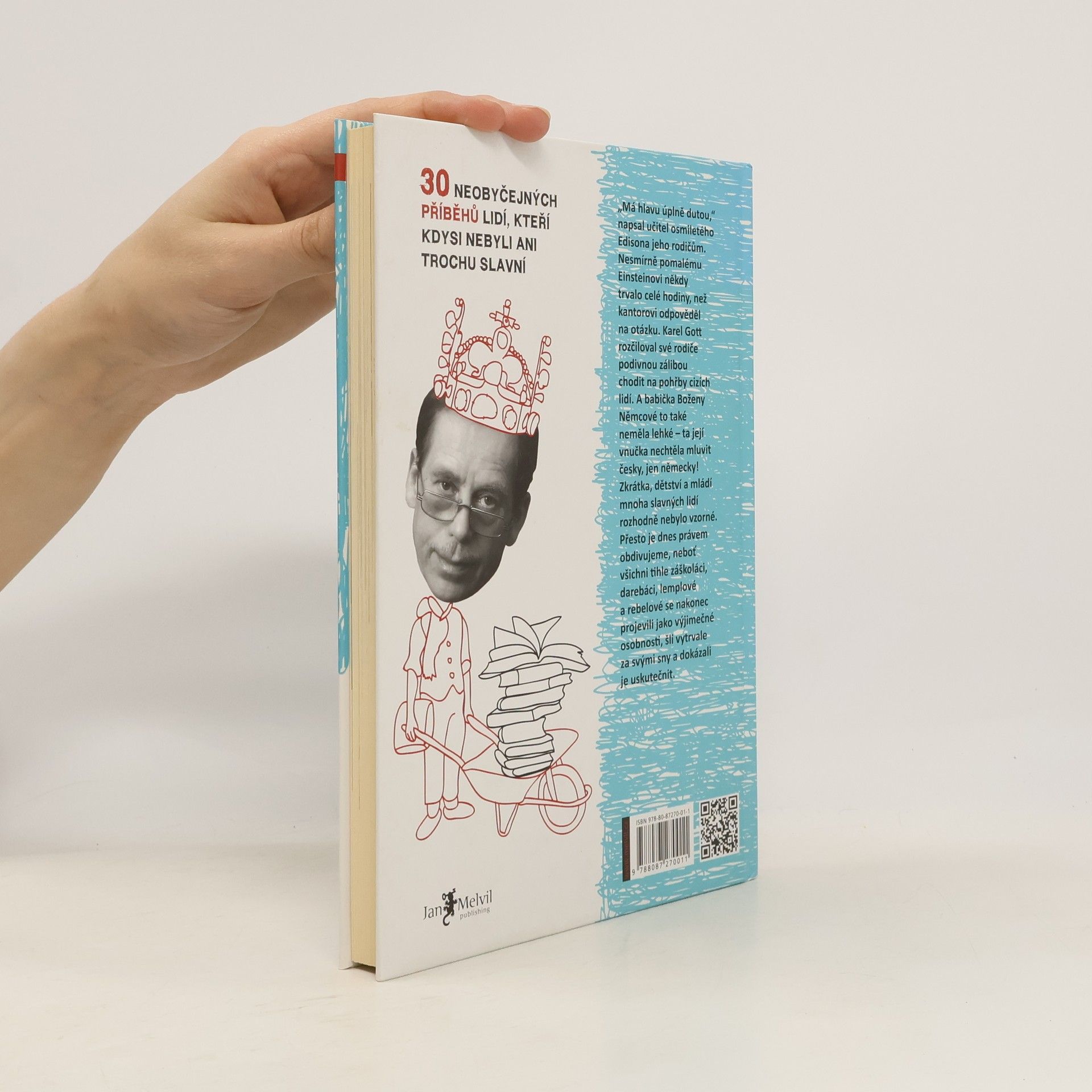Neobyčejná kniha pro mládež, ale i dospělé čtenáře, přibližuje dětství a mládí 30 špatných žáků, darebáků, lemplů a rebelů, kteří to nakonec dotáhli daleko. „Má hlavu úplně dutou,“ napsal například Edisonův učitel jeho matce. Pomalému Einsteinovi někdy trvalo celé hodiny, než kantorovi odpověděl na otázku. Karel Gott rozčiloval své rodiče podivnou zálibou chodit na pohřby cizích lidí. A Božena Němcová – ta zase nechtěla mluvit česky! Kniha obsahuje více než 150 fotografií a ilustrací. Otakar Batlička Alexander Graham Bell Konstantin Biebl Napoleon Bonaparte Paul Cézanne Mikuláš Dačický z Heslova Charles Darwin Walt Disney Antonín Dvořák Thomas Alva Edison Albert Einstein Emil Filla Alberto Vojtěch Frič Josef Václav Frič Karel Gott Václav Havel Charlie Chaplin Jaromír Jágr John Lennon Gregor Johann Mendel Gustav Meyrink Božena Němcová Karel Poláček Bedřich Smetana Josef Sudek Max Švabinský Toyen Leonardo da Vinci Petr Vok z Rožmberka Jan Eskymo Welzl