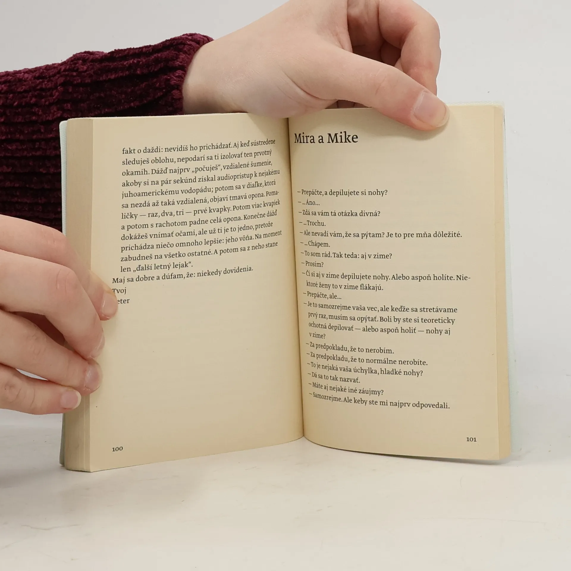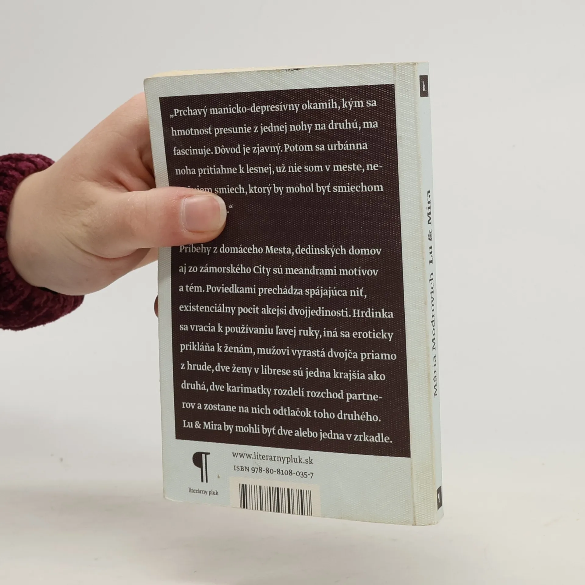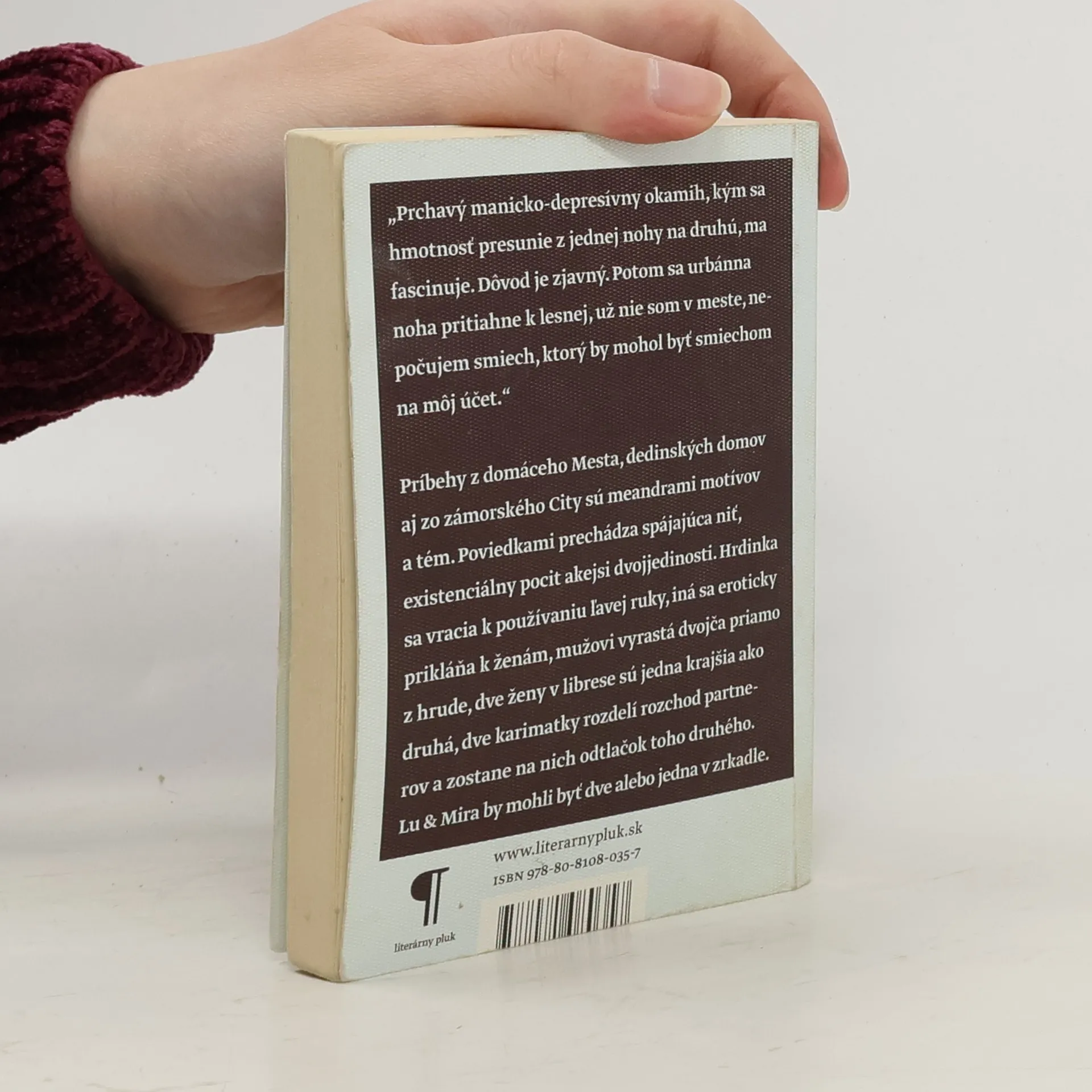 Príbehy z domáceho Mesta, dedinských domov aj zo zámorského City sú meandrami motívov a tém. Poviedkami prechádza spájajúca niť, existenciálny pocit akejsi dvojjedinosti. Hrdinka sa vracia k používaniu ľavej ruky, iná sa eroticky prikláňa k ženám, mužovi vyrastá dvojča priamo z hrude, dve ženy v librese sú jedna krajšia ako druhá, dve karimatky rozdelí rozchod partnerov a zostane na nich odtlačok toho druhého. Lu & Mira by mohli byť dve alebo jedna v zrkadle.