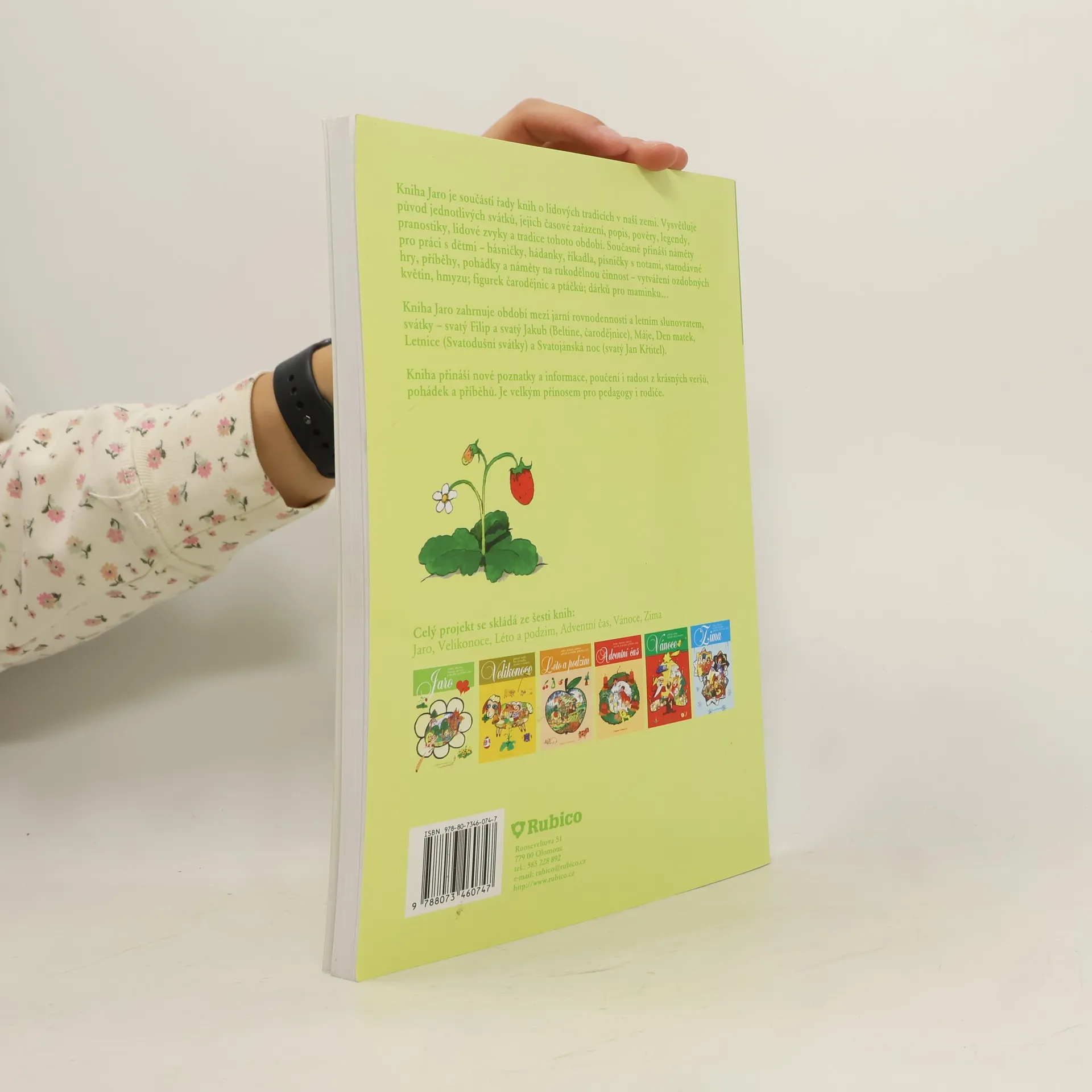 Kniha Jaro je součástí řady knih o lidových tradicích v naší zemi. Vysvětluje původ jednotlivých svátků, jejich časové zařazení, popis, pověry, legendy, pranostiky, lidové zvyky a tradice tohoto období. Současně přináší náměty pro práci s dětmi – básničky, hádanky, říkadla, písničky s notami, starodávné hry, příběhy, pohádky a náměty na rukodělnou činnost – vytváření ozdobných květin, hmyzu; figurek čarodějnic a ptáčků; dárků pro maminku… Kniha Jaro zahrnuje období mezi jarní rovnodenností a letním slunovratem, svátky – svatý Filip a svatý Jakub (Beltine, čarodějnice), Máje, Den matek, Letnice (Svatodušní svátky) a Svatojánská noc (svatý Jan Křtitel). Kniha přináší nové poznatky a informace, poučení i radost z krásných veršů, pohádek a příběhů. Je velkým přínosem pro pedagogy i rodiče.