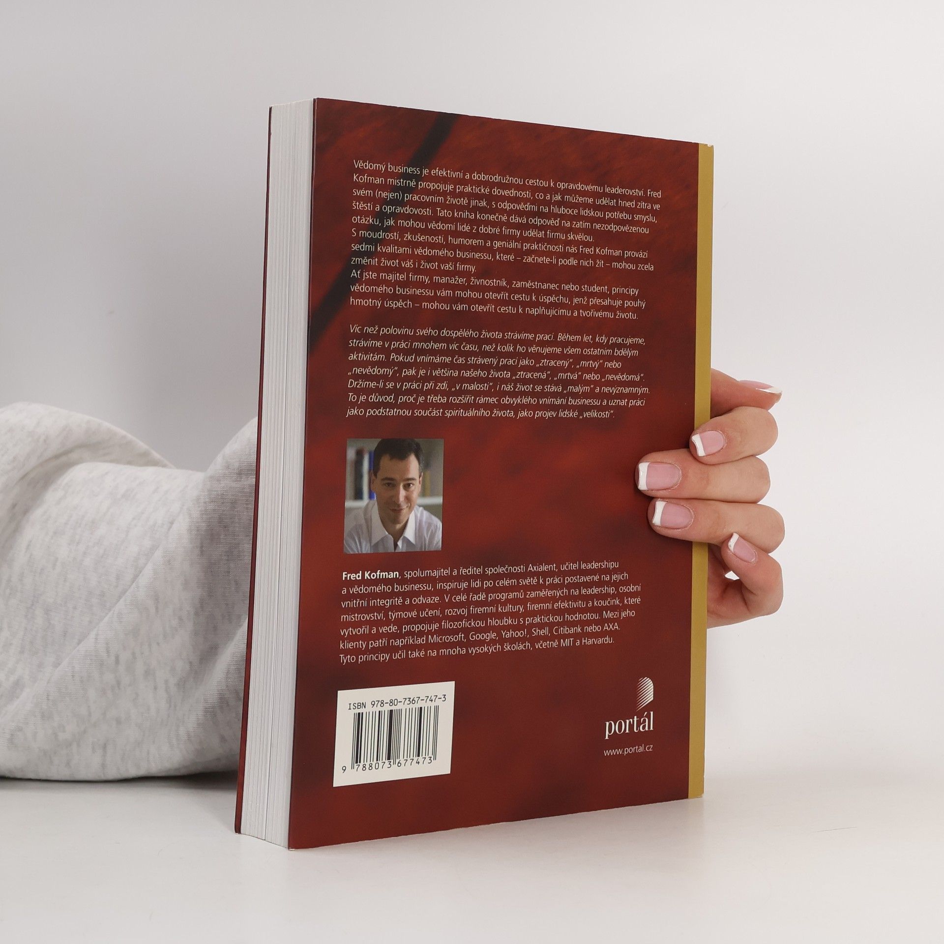 Vědomý business je efektivní a dobrodružnou cestou k opravdovému leaderovství. Fred Kofman mistrně propojuje praktické dovednosti, co a jak můžeme udělat hned zítra ve svém (nejen) pracovním životě jinak, s odpověďmi na hluboce lidskou potřebu smyslu, štěstí a opravdovosti. S moudrostí, zkušeností, humorem a geniální praktičností nás autor provází sedmi kvalitami vědomého businessu, které – začnete-li podle nich žít – mohou zcela změnit život váš i život vaší firmy. Ať jste majitel firmy, manažer, živnostník, zaměstnanec nebo student, principy vědomého businessu vám mohou otevřít cestu k úspěchu, jenž přesahuje pouhý hmotný úspěch – mohou vám otevřít cestu k naplňujícímu a tvořivému životu.