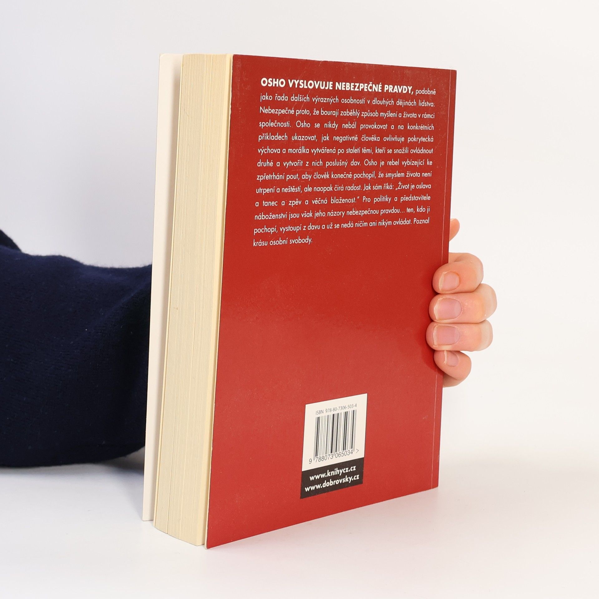 Odvaha přijmout nepoznatelné V celých dějinách lidstva se setkáváme s jedinci, kteří říkali nebezpečnou pravdu. Nebezpečnou proto, že bourá zaběhlý způsob myšlení a života v rámci lidské společnosti. Osho patří mezi osobnosti, které se nikdy nebály provokovat a na konkrétních příkladech ukazovat, jak negativně člověka ovlivňuje pokrytecká výchova a morálka vytvářená po staletí lidmi, kteří se snažili ovládnout druhé a vytvořit z nich poslušný dav. Osho je rebel vybízející ke zpřetrhání pout, aby člověk konečně poznal, že smyslem života není utrpení a neštěstí, ale právě naopak radost a blaženost. Jak sám říká: „Život je oslava a tanec a zpěv a věčná blaženost - prožívání života Zorby Buddhy, který spojuje vše krásné, co nabízí tento svět, s nejvyšším poznání jednoty člověka a celého vesmíru.“ Pro politiky a představitele náboženství je to ale nebezpečná pravda, protože ten, kdo ji pochopí, vystoupí z davu a už se nedá ničím ani nikým ovládat, protože poznal krásu osobní svobody.