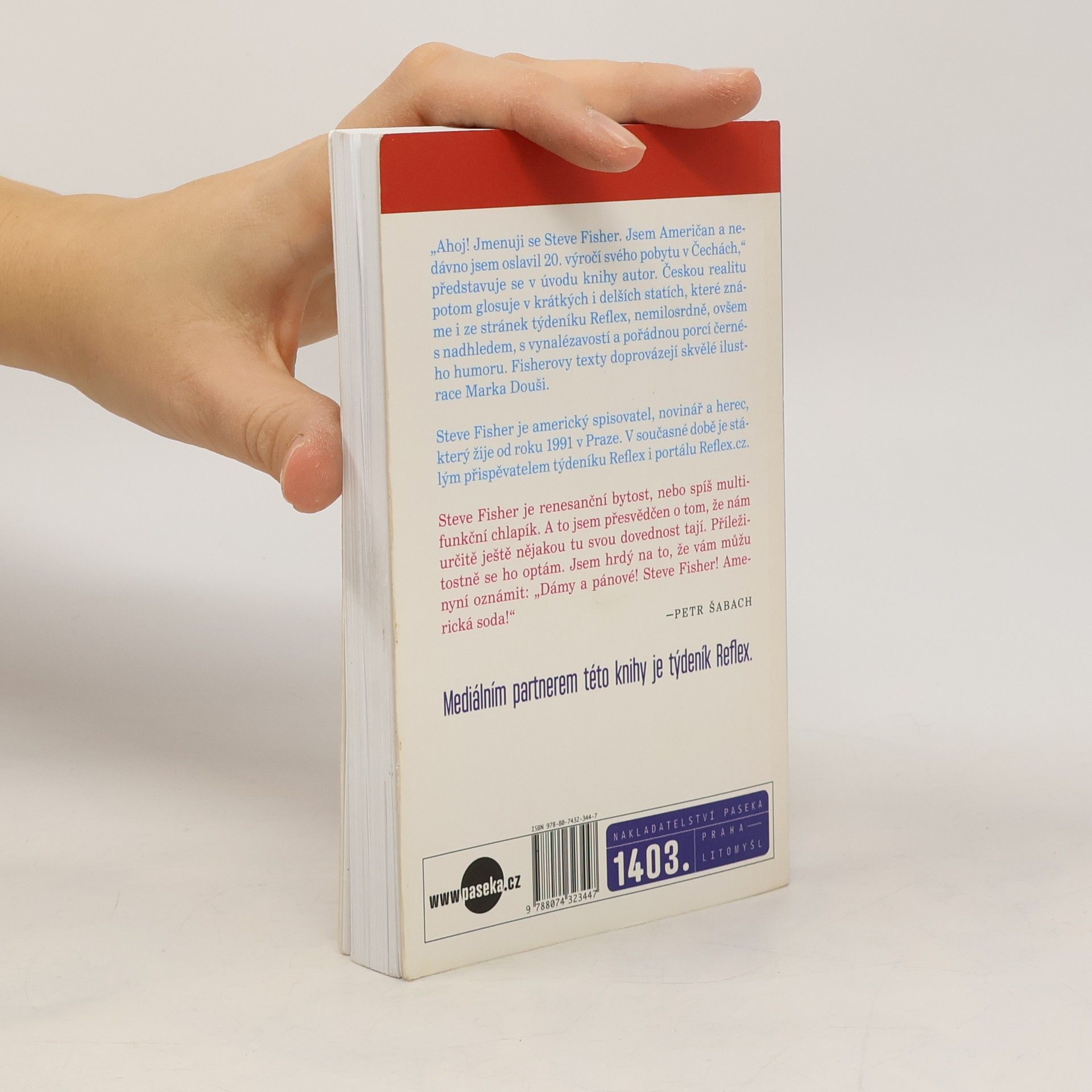 Ahoj! Jmenuji se Steve Fisher. Jsem Američan a nedávno jsem oslavil 20. výročí svého pobytu v Čechách,“ představuje se v úvodu knihy autor. Českou realitu potom glosuje v krátkých i delších statích, které známe i ze stránek týdeníku Reflex, nemilosrdně, ovšem s nadhledem, s vynalézavostí a pořádnou porcí smyslu pro černý humor. Fisherovy texty doprovázejí skvělé ilustrace Marka Douši.