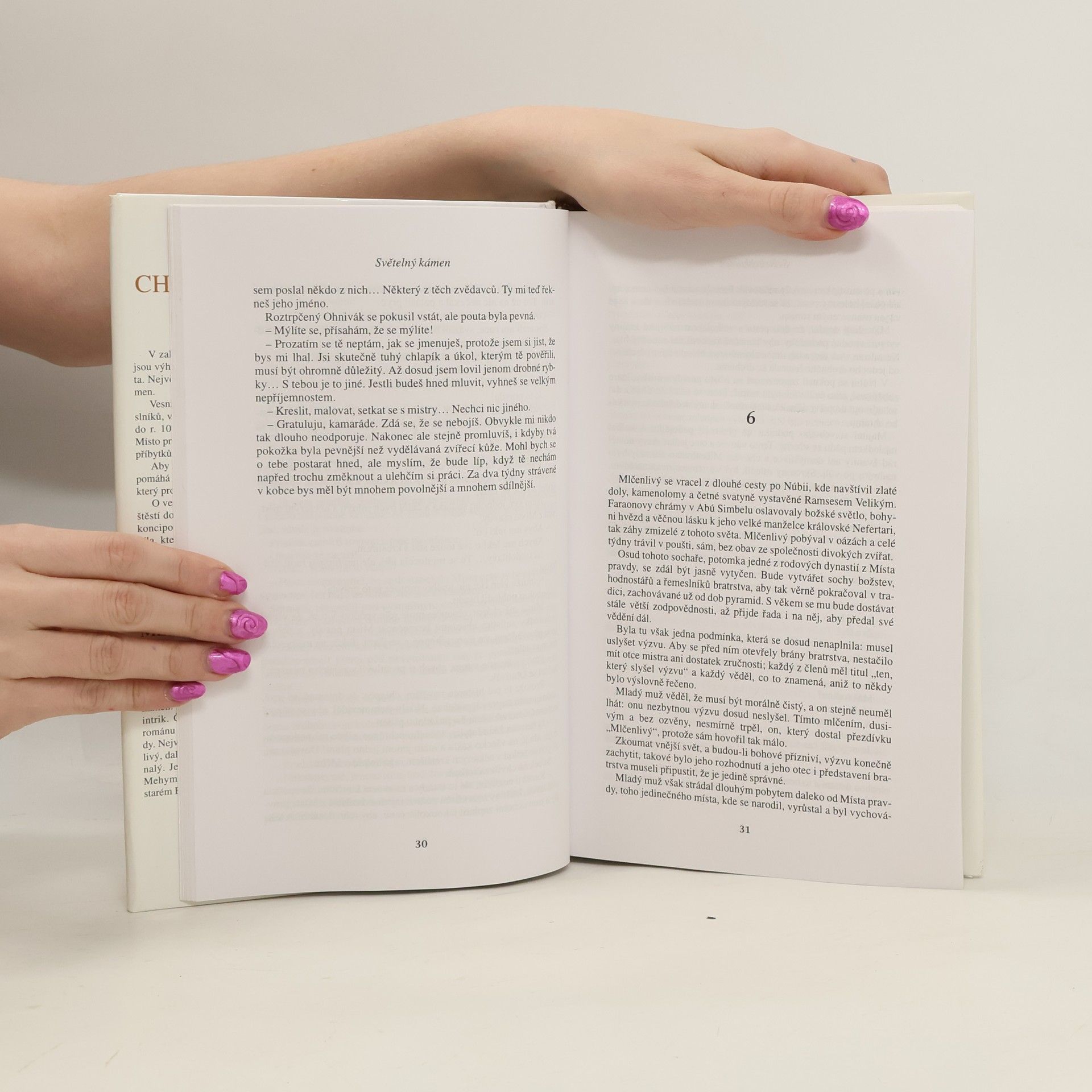 První kniha cyklu Světelný kámen o osudech obyvatel tajemné vesnice ve starověkých Thébách, kde se vytvářela výzdoba hrobek faraonů. Autor se tentokrát soustředil na tzv. Místo pravdy, vesnici v západních Thébách: tam žili a pracovali umělci a řemeslníci, kteří zdobili a budovali faraónské hrobky. V jejich práci jim pomáhá Světelný kámen, jehož tajuplná kouzelná moc láká thébského důstojníka Mehyho natolik, že se rozhodne kámen ukrást. V dynamickém ději plném intrik a překvapivých momentů autor představuje další hrdiny románu, mezi nimiž vyniká zejména mladý sochař Nefer Mlčenlivý, nositel prozíravosti, odvahy a tvůrčího ducha. Autor ve svém poutavém románu oživil svět starověkého Egypta na sklonku vlády Ramsese Velikého, svět mistrů, jejichž dílo nedozírné krásy obdivujeme dodnes, aniž se nám podařilo zcela rozluštit všechna tajemství do něj vložená. Dolezalj