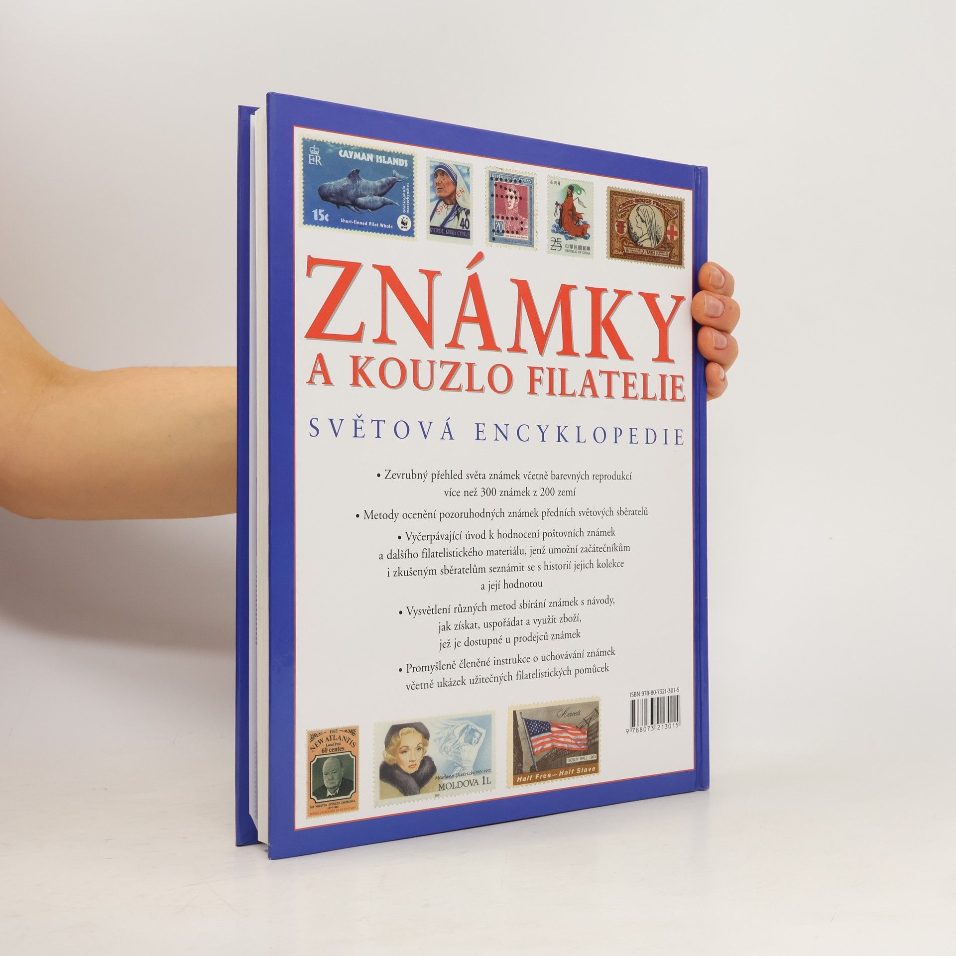 Výtečná kniha pro začínající i pokročilé filatelisty. Obsahuje kapitoly o historii známek, jejich vlastnostech, tvorbě a výrobě či o sběratelství i systematický filatelistický zeměpis světa s ukázkami nejvýznamnějších známek jednotlivých států. (světová encyklopedie : ilustrovaný encyklopedický přehled více než tří tisíc nejzajímavějších známek z celého světa a odborné rady, jak si založit kvalitní sbírku známek a jak ji zdokonalovat)