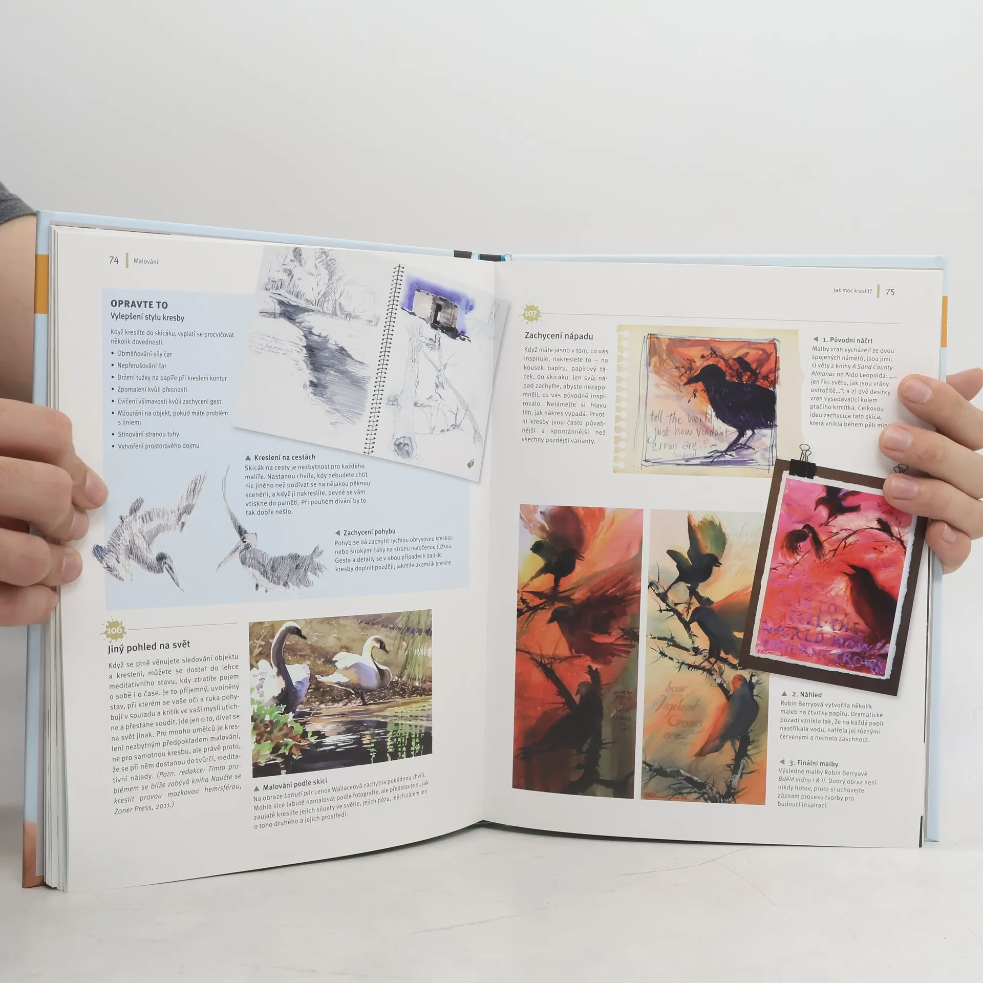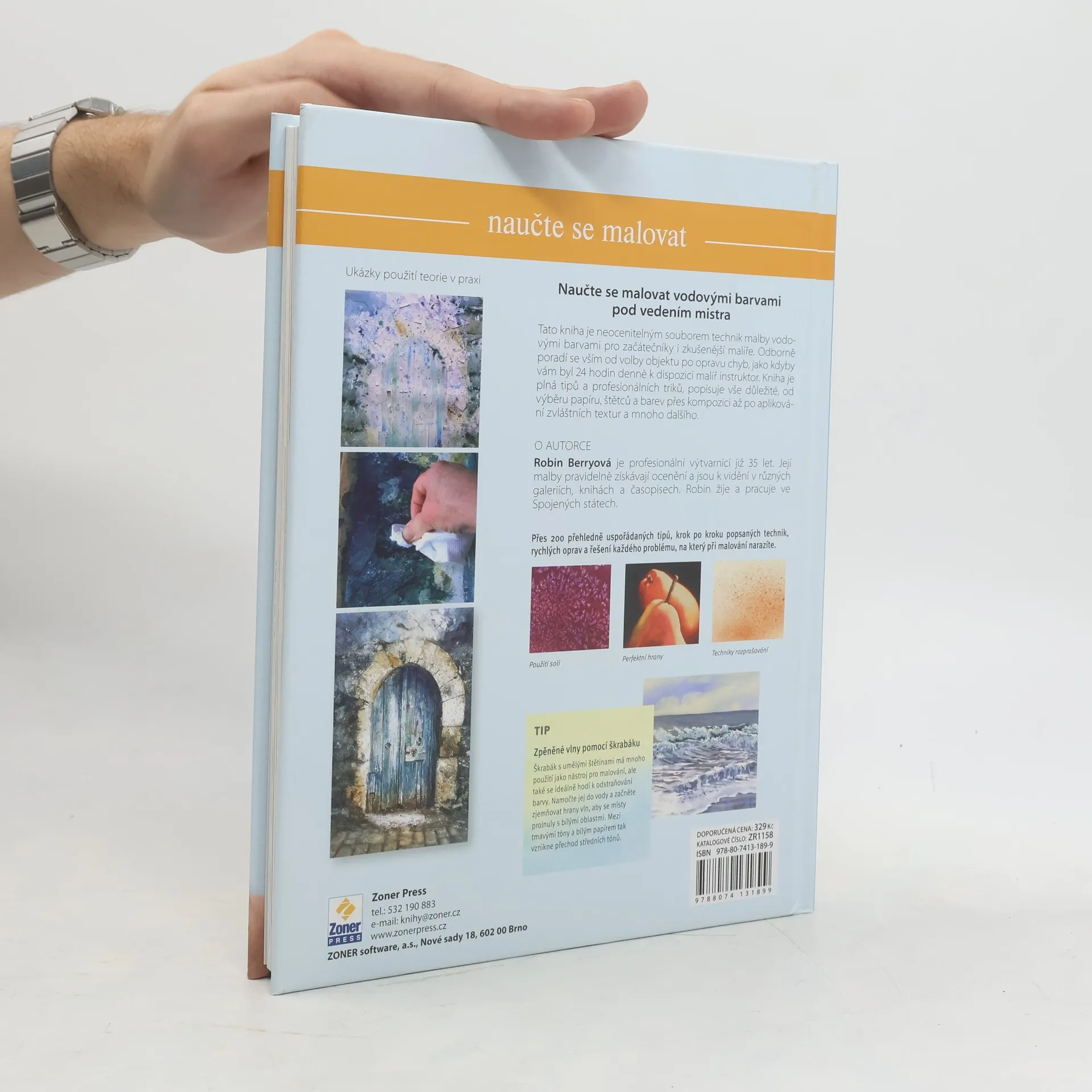 Vodové barvy a tato kniha vás uvedou do světa malování. Kniha Robin Berryové vás vtáhne do světa malování přirozeně a nenásilně. Se zkušenou malířkou se nemusíte bát toho, že ve svých malířských začátcích narazíte na problémy, se kterými si nebudete vědět rady. Od úplných základů, počínaje výběrem papíru, štětců a vhodných barev, přes zajímavou kompozici, počáteční kresbu, volbu působivé barevné palety vás kniha provede až po řadu pokročilých tipů a triků, které dokážou vdechnout malbě život. Naučíte se používat různé předlohy, malovat podle fotografií i skutečnosti a vytvářet si vlastní sbírku vizuálních pomůcek – náčrtků, fotografií, ukázek toho, co vás oslovuje a pomáhá vám utvářet vlastní umělecký styl. Kniha se zabývá základními postupy pro malování vody, oblohy, způsoby, jak vyjádřit různé stavy počasí nebo jak v obraze zachytit pohyb na ukázkách malování zvířat a ptáků. Část publikace se věnuje malování lidské postavy a portrétu. Publikace je plná inspirativních ukázek prací řady umělců a v několika případech zachycuje celý umělecký proces. Začíná výběrem tématu, návrhem kompozice, volbou vhodných barev a v postupných krocích zachycuje a vysvětluje vznik obrazu. Knížka je určena jak začínajícím zájemcům o malování vodovými barvami, tak i těm pokročilým, kteří si potřebují ověřit a upřesnit dosažené znalosti a najít inspiraci pro další pokračování.