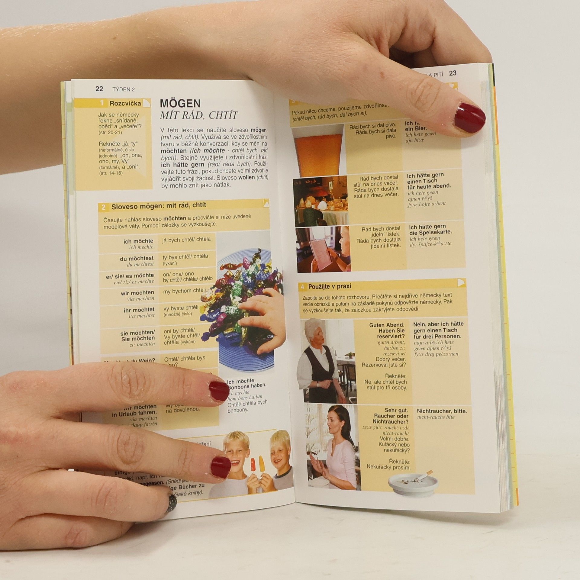 Učebnice pro začátečníky a mírně pokročilé. Nevyžaduje žádné předchozí znalosti jazyka, výuka je formou přiměřené slovní zásoby a konverzace. Kniha jsou rozdělena do tematických celků a zahrnuje oboustranný slovníček i průvodce jídelním lístkem.