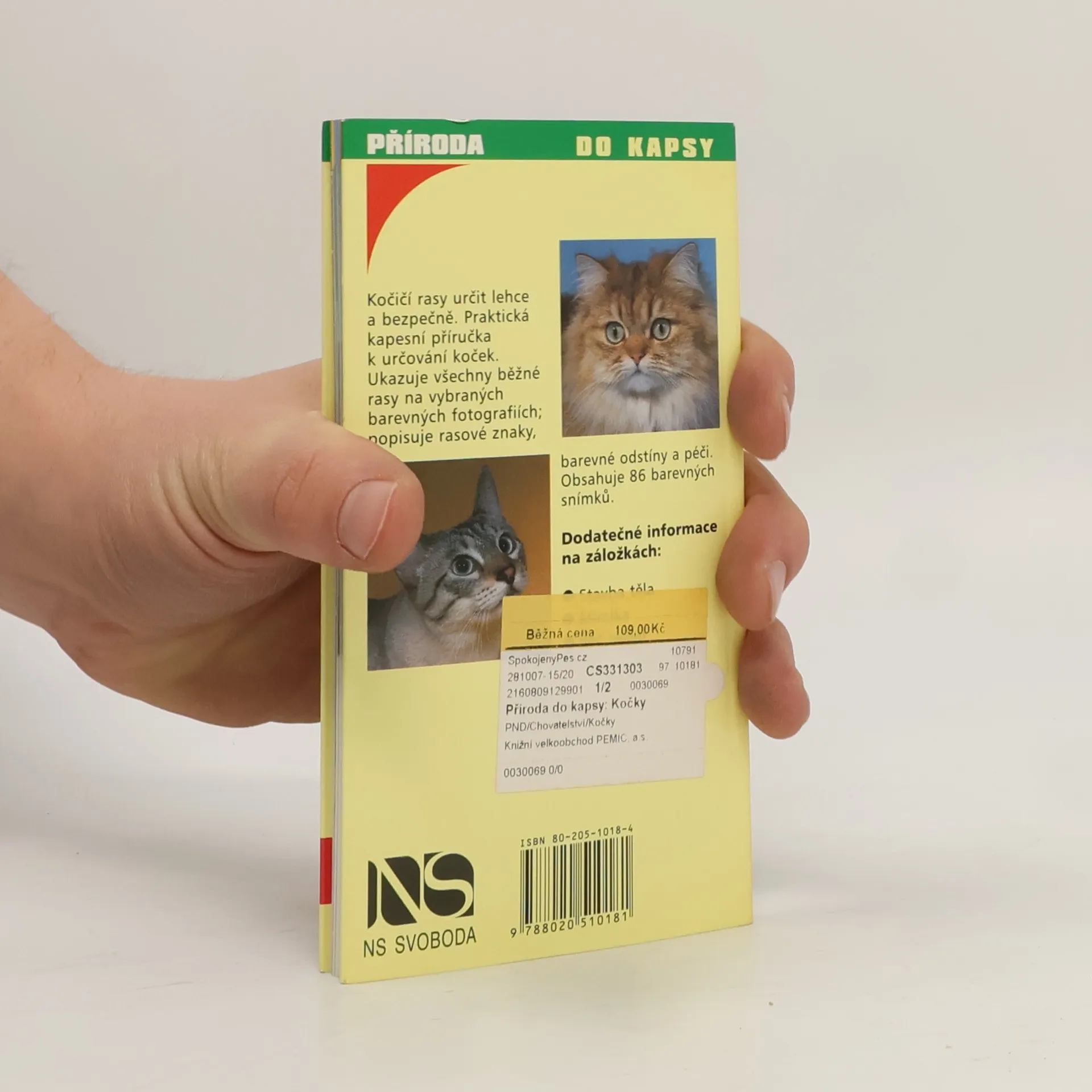 Publikace rozděluje kočiči rasy podle délky chlupů (barevné rozdělení knihy do částí) na kočky dlouhosrsté, kočky s polodlouhou srstí a kočky krátkosrsté. Uvnitř každé části jsou běžné kočičí rasy seřazeny abecedně a popsány hlavní rasové znaky. Popis doprovází barevná fotografie. Stručné obecné informace o původu a schopnostech kočky, stavbě těla, mimice, řeči tělem jsou uvedeny v úvodu knihy a na záložkách.