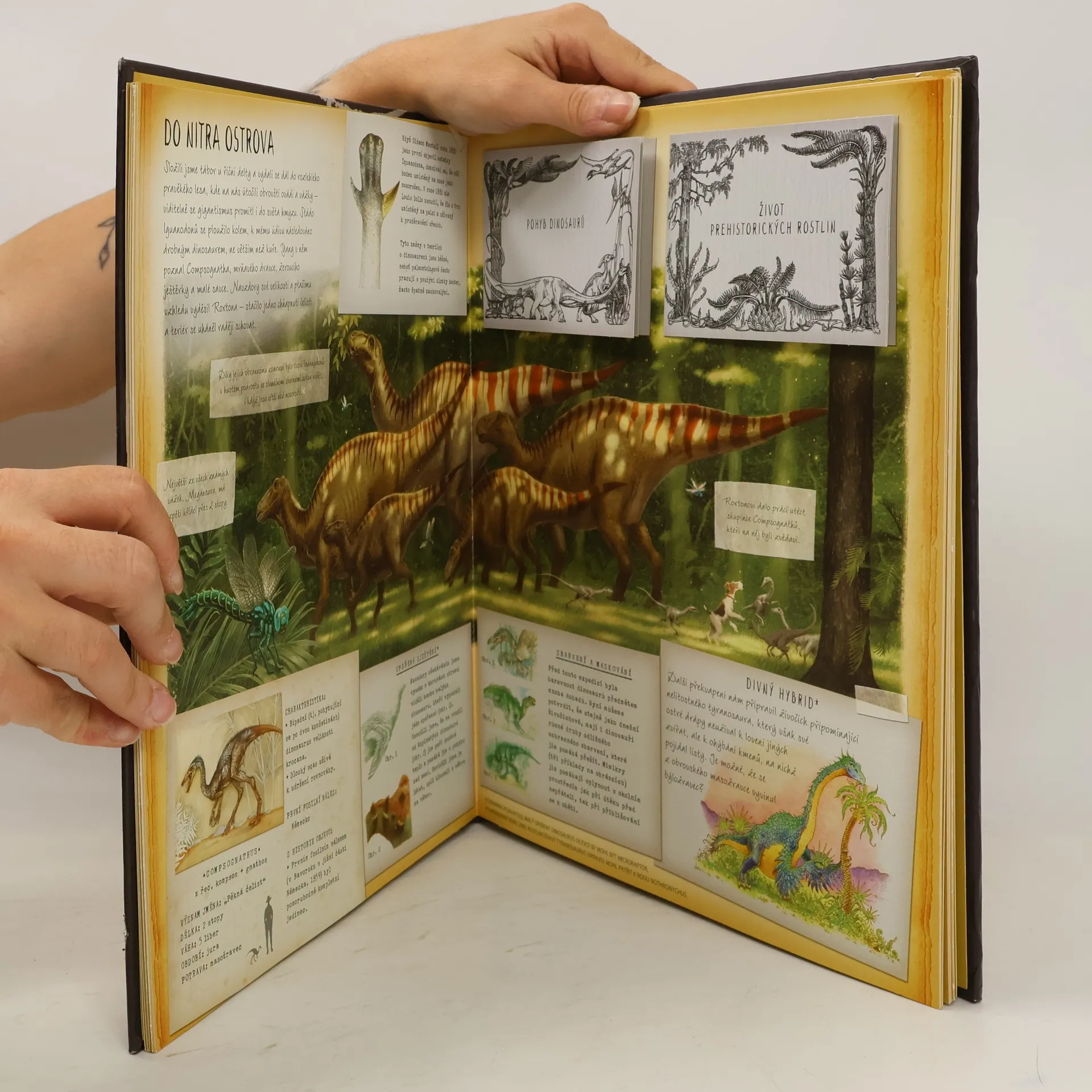 „Slyšeli jsme příběhy o ostrově, na němž pobývají dinosauři. Mohly by být legendy pravdivé? Jedeme na ostrov, abychom to zjistili.“ Tato kniha je faksimile zápisníku výpravy, která se vydala na prastarý ostrov. Ostrov pokrytý neobvyklou vegetací, kde je slyšet ohlušující podivné skřeky a kde žijí podivuhodná pravěká zvířata. Kniha je bohatou sbírkou nejen názorných ilustrací prehistorických zvířat, vyobrazením jejich bojů a poznámek o jejich způsobu života, ale najdete v ní i kousek svléknuté kůže Allosaura nebo jemně mleté dinosauří rohy, které ostrované užívají jako lék. Kniha je určena klukům a holkám, které zajímá život dinosaurů.