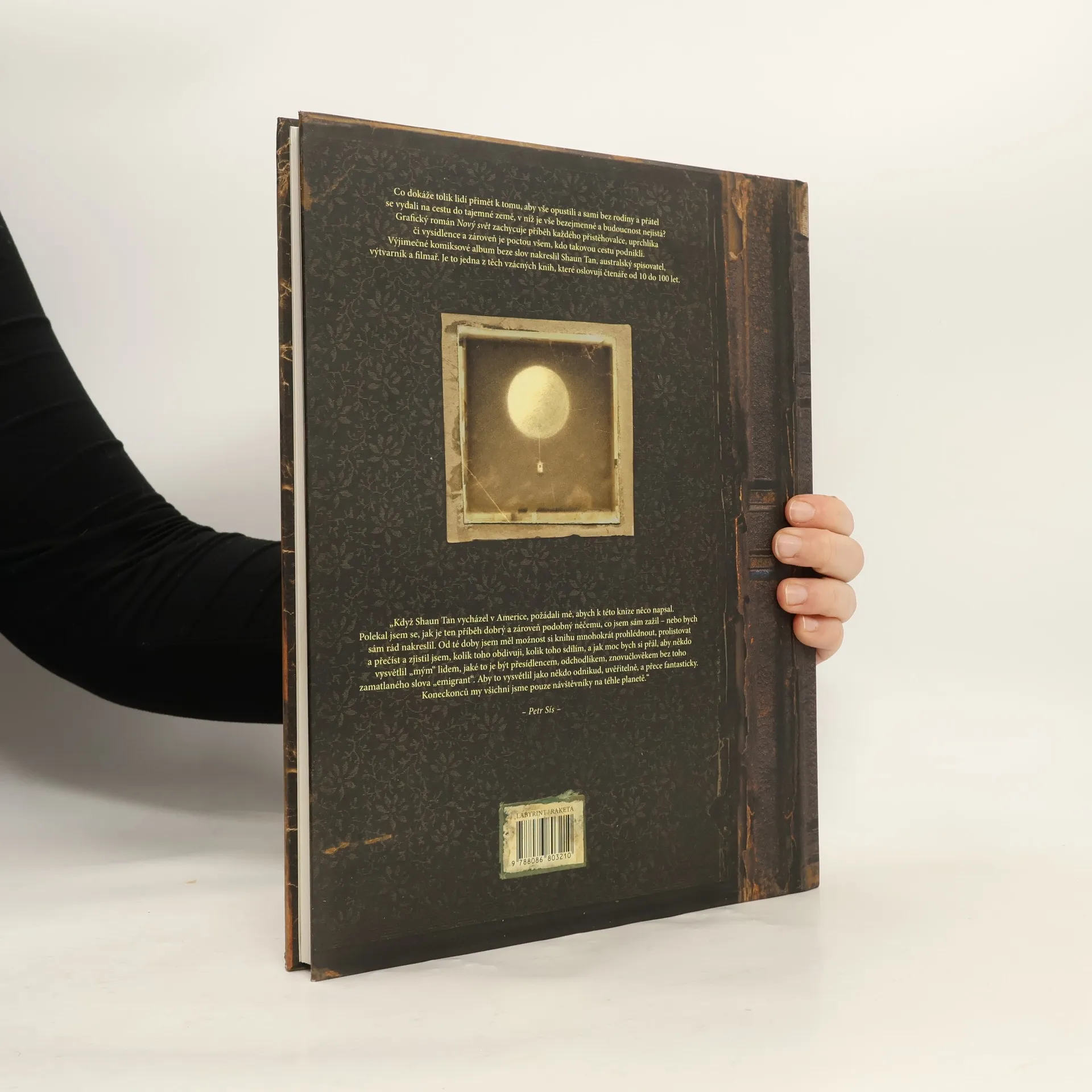 Výjimečné komiksové album beze slov. Co dokáže tolik lidí přimět k tomu, aby vše opustili a sami bez rodiny a přátel se vydali na cestu do tajemné země, v níž je vše bezejmenné a budoucnost nejistá? Grafický román zachycuje příběh každého přistěhovalce, uprchlíka či vysídlence a zároveň je poctou všem, kdo takovou cestu podnikli. Jedna z těch vzácných knih, které oslovují čtenáře od 10 do 100 let.