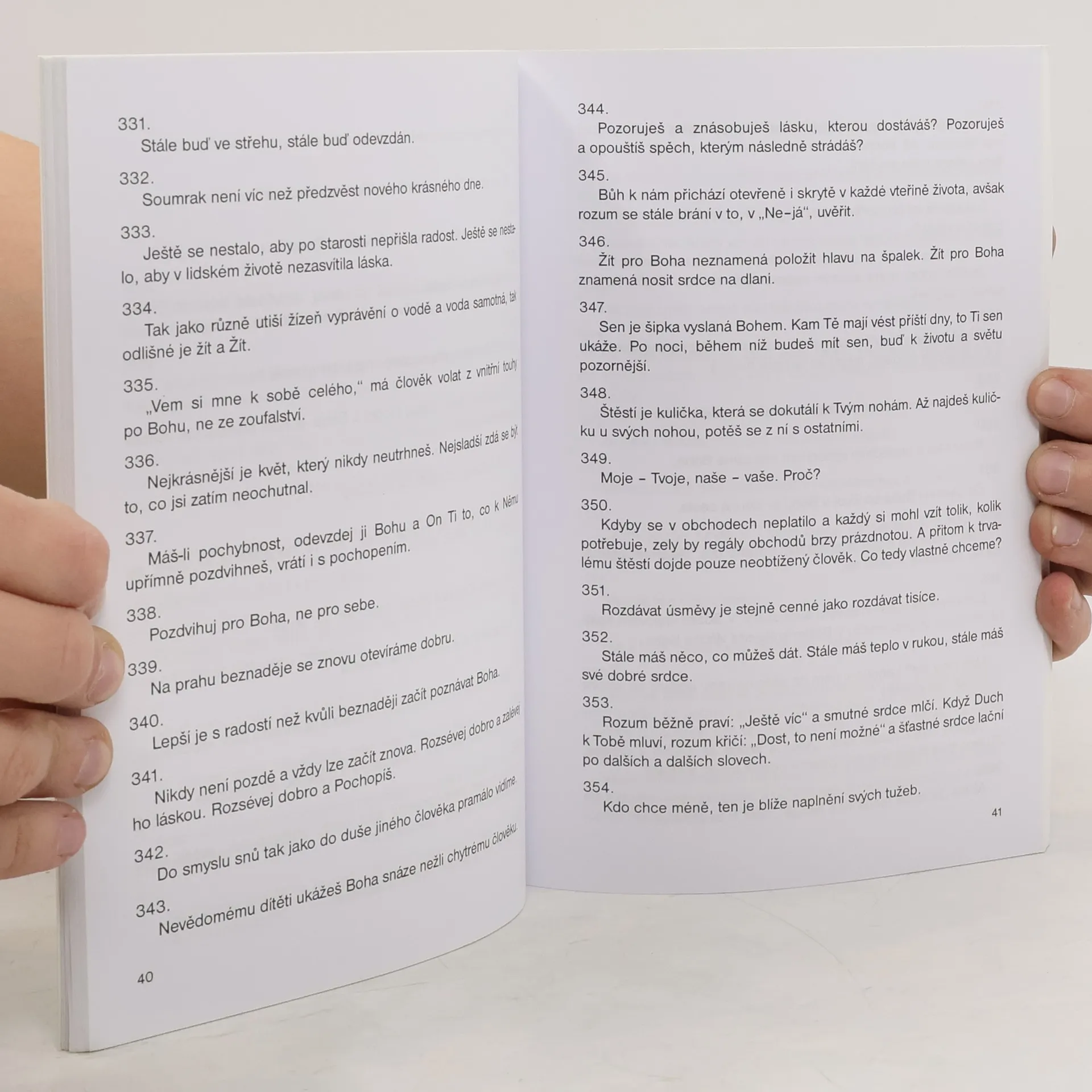 Sled impulsů k zamyšlení nad naším přístupem ke světu a k sobě samému. Dává možnost přehodnotit svůj žebříček hodnot a své životní priority, které se zde upírají k lásce k Bohu a ke svému bližnímu.