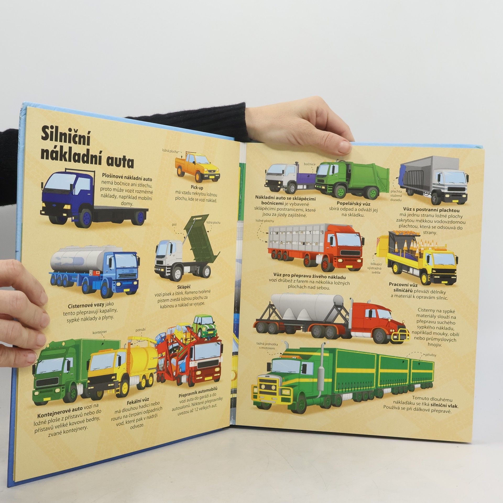 Není auto jako auto... Některá auta jsou strašně veliká, některá hodně vysoká, některá hrozně dlouhá a další zase velice silná. Prohlédněte si stránky této knihy (některé dvoustrany lze ještě rozložit tak, aby se tam vešly i ty opravdu nejdelší) a najdete v ní některá největší a nejsilnější auta a zařízení, jaké kdy byly vyrobeny: od obřích rypadel a velkých nákladních aut po mobilní jeřáby. Seznamte se s nimi!