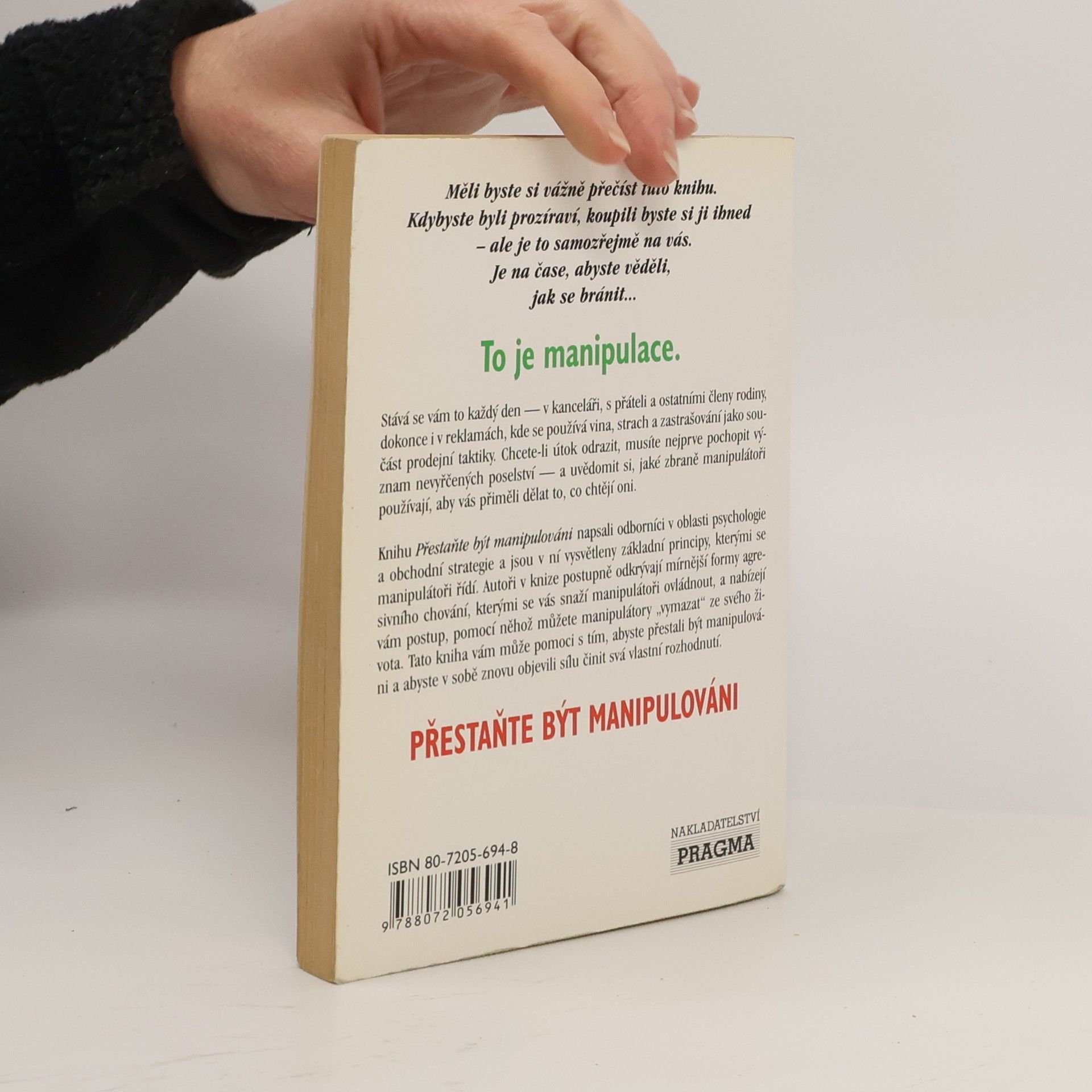 There are currently of book Přestaňte být manipulováni. Jak se zbavit tyranizování, šikanování a otrockého plnění příkazů (2000) in stock.