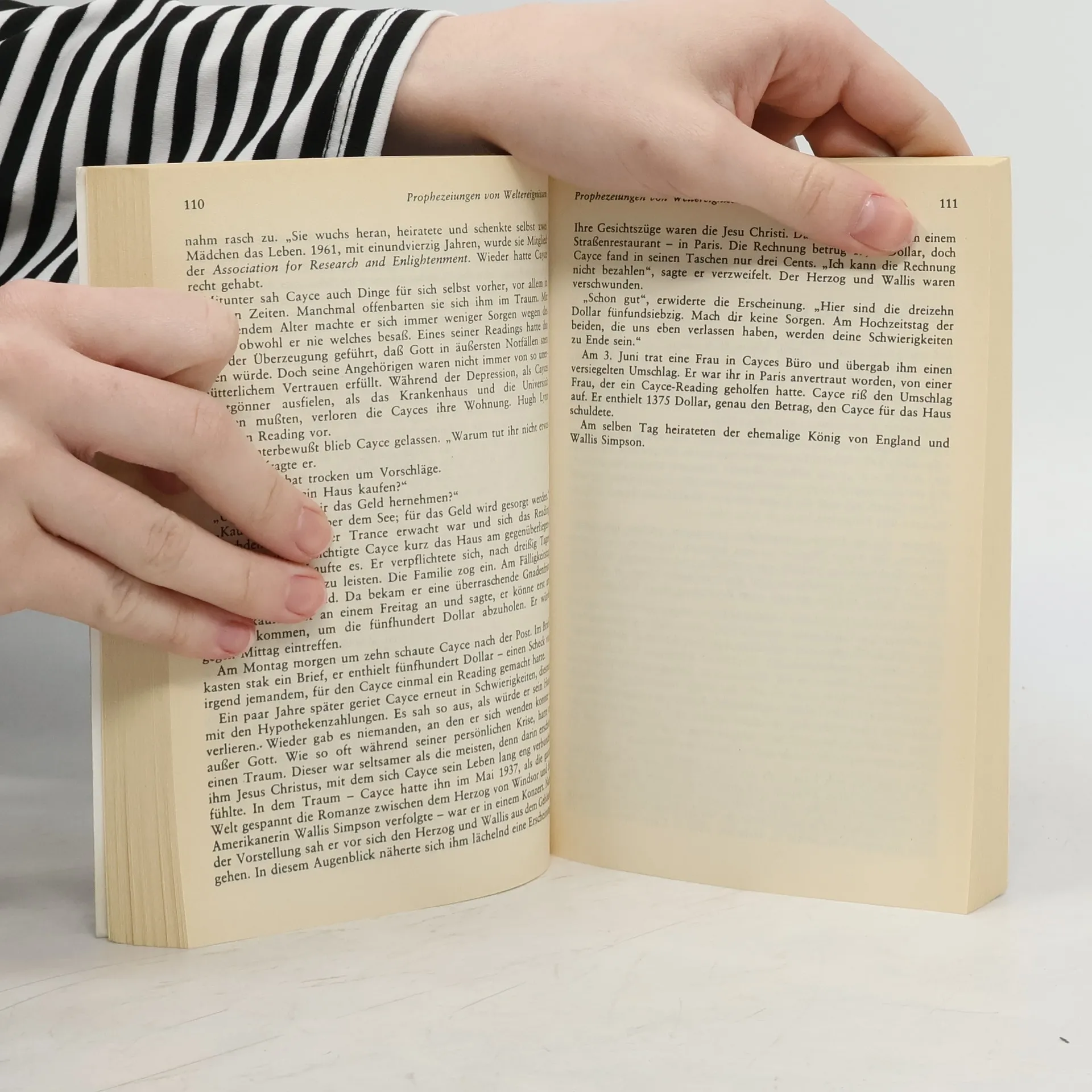 Bereits in seiner Jugend entdeckte Edgar Cayce seine Gabe, in einen tranceartigen Bewusstseinszustand einzutreten und Ereignisse vorherzusehen. Er konnte sich zur wirtschaftlichen und politischen Lage und Entwicklung der Welt äußern, obwohl er nur eine geringe Schulbildung hatte, und Weltereignisse mit teils präzisen Angaben zu Ort und Zeit prophezeien. Am wichtigsten war es ihm jedoch, seine außergewöhnliche Gabe für jene Menschen einzusetzen, die seiner Hilfe am ehesten bedurften: Ohne medizinische Ausbildung war er in der Lage, Krankheiten bei Menschen festzustellen, die er noch nie zuvor gesehen hatte, und ihnen Wege der Heilung aufzuzeigen. Selbst bei Fällen, die die Schulmedizin bereits aufgegeben hatte, konnte der bekannte Seher zur Heilung beitragen. Eine Vielzahl seiner Prophezeiungen ist bis heute mit erstaunlicher Präzision eingetroffen sei es die Ermordung J. F. Kennedys, die Rassenunruhen in Amerika oder Beginn und Ende der beiden Weltkriege. Dies hat auch die größten Skeptiker von seiner Gabe überzeugt.