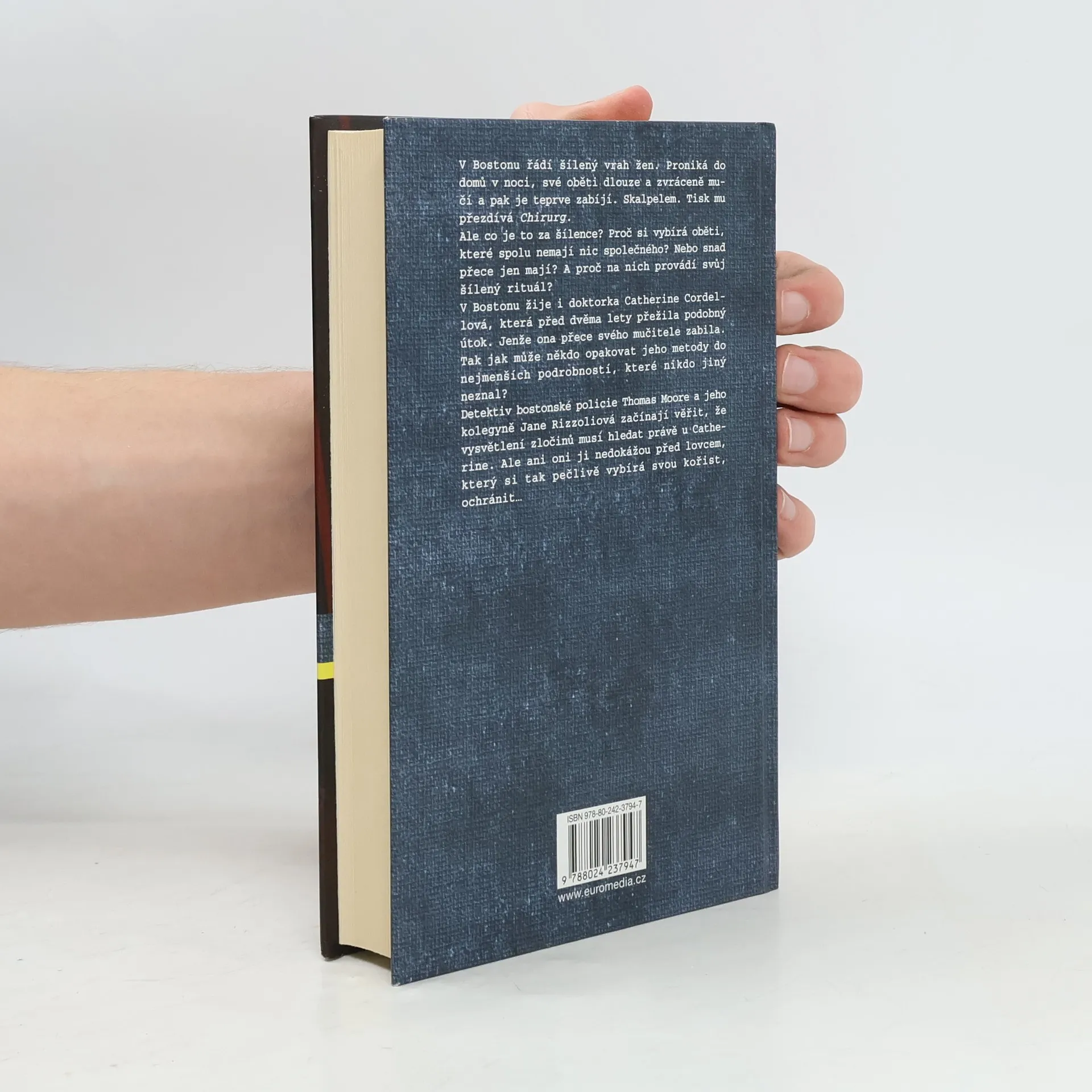 V Bostonu řádí šílený vrah žen. Proniká do domů v noci, své oběti dlouze mučí a pak je zabíjí skalpelem. Tisk mu přezdívá Chirurg. Co je to za šílence?... V Bostonu žije i doktorka Catherine Cordellová, která před dvěma lety přežila podobný útok - jenže ona svého mučitele zabila. Jak tedy může někdo opakovat jeho metody do nejmenších podrobností, které nikdo jiný neznal? Detektiv bostonské policie Thomas Moore a jeho kolegyně Jane Rizzoliová začínají věřit, že vysvětlení zločinů musí hledat právě u Catherine. Ale ani oni ji nedokážou před lovcem, tak pečlivě si vybírajícím svou kořist, ochránit.