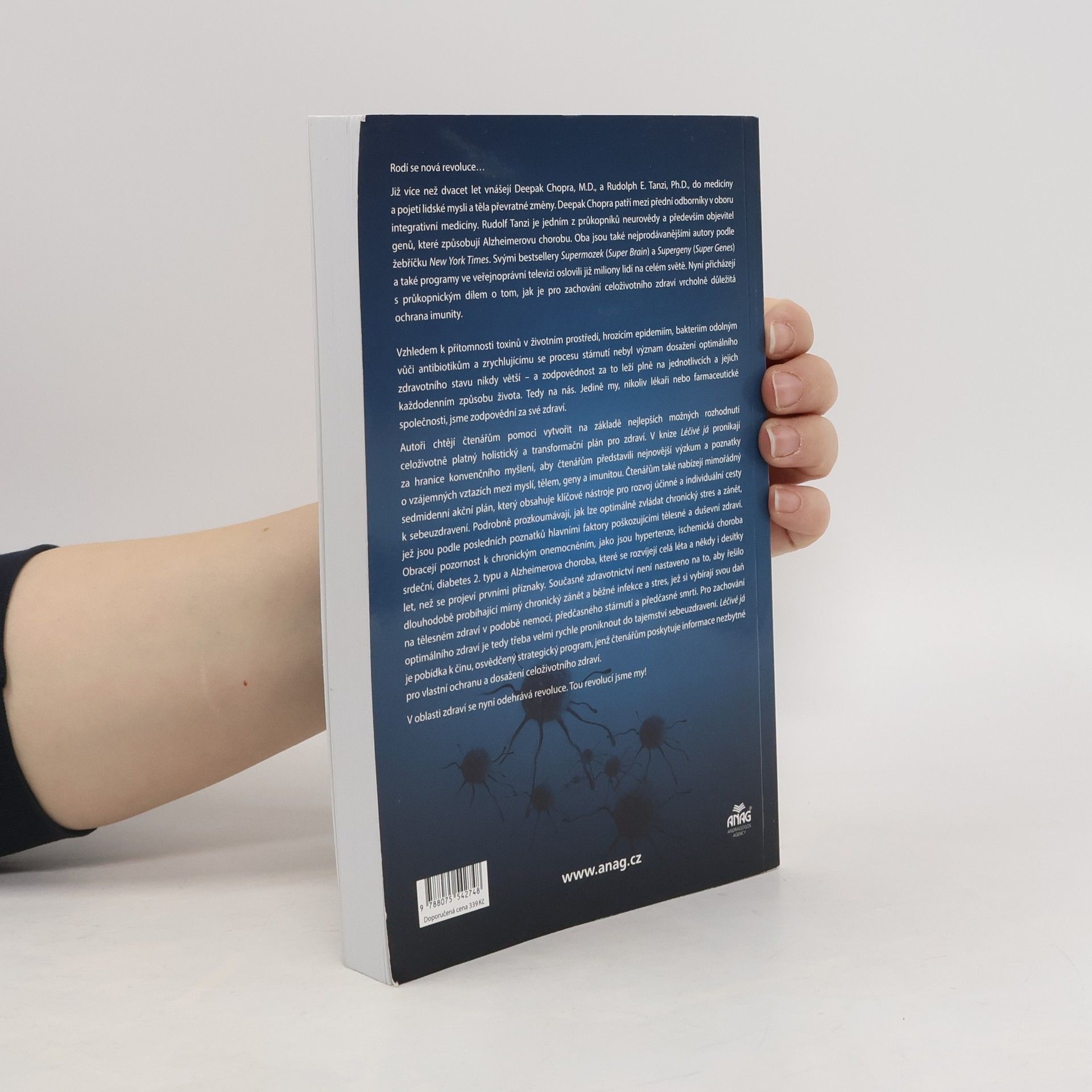 Deepak Chopra, M.D., a Rudolph E. Tanzi, Ph.D., přinášejí více než dvacet let revoluční změny do medicíny a chápání lidské mysli a těla. Chopra, expert na integrativní medicínu, a Tanzi, průkopník neurovědy a objevitel genů způsobujících Alzheimerovu chorobu, oslovili miliony lidí prostřednictvím svých bestsellerů a televizních programů. Jejich nová práce se zaměřuje na klíčovou roli imunity pro celoživotní zdraví. Vzhledem k toxinům v prostředí, hrozbám epidemií a stárnutí je zodpovědnost za zdraví plně na jednotlivcích a jejich životním stylu. Autoři nabízejí sedmidenní akční plán, který čtenářům pomůže vytvořit holistický a transformační plán pro zdraví. Kniha zkoumá nejnovější výzkumy vztahů mezi myslí, tělem, geny a imunitou a poskytuje nástroje pro sebeuzdravení. Zaměřuje se na chronický stres a zánět, které negativně ovlivňují zdraví. Chopra a Tanzi se věnují chronickým onemocněním, jako jsou hypertenze a diabetes 2. typu, která se vyvíjejí roky před tím, než se projeví příznaky. Současné zdravotnictví není připraveno na dlouhodobé chronické problémy, a proto je důležité pochopit tajemství sebeuzdravení. Tato kniha je výzvou k akci a strategickým programem pro ochranu a dosažení celoživotního zdraví.