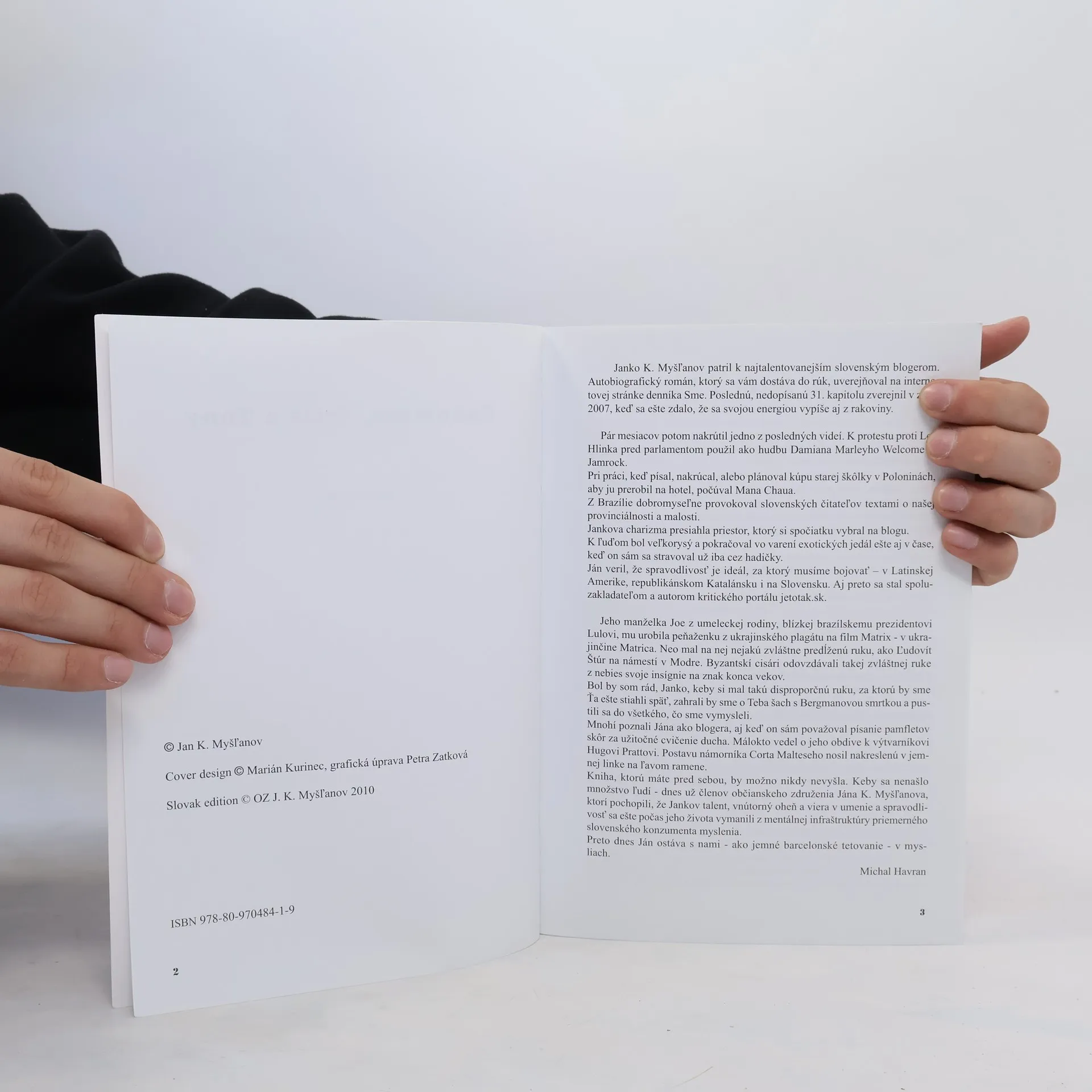 Bloguje hocikto, niektorí svoje blogy vydajú aj knižne. Ján K. Myšľanov napísal cez blogy román. Rada by som hovorila o jeho radosti z písania, o radosti z prečítaného, o tom, že jeho blogy či kapitoly sú jedna lepšia ako druhá, že je to parádny a veselý text, ale Ján Myšľanov už nežije, a preto aj radosť z prečítaného akosi zostáva stáť v krku.