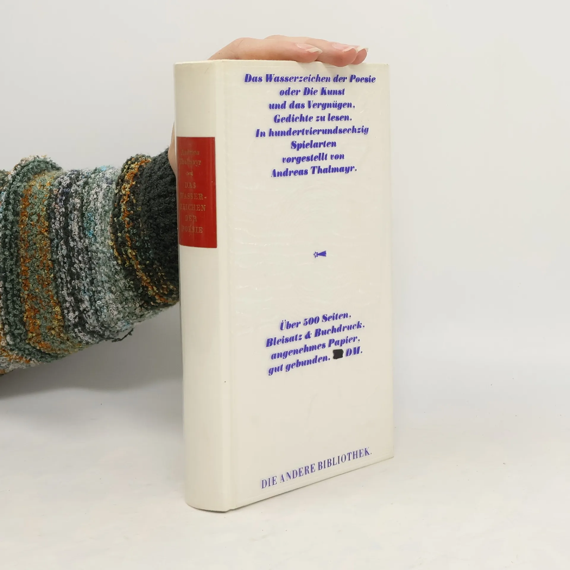 Seit mittlerweile 15 Jahren besteht Hans Magnus Enzensbergers "Andere Bibliothek" innerhalb des Eichborn Verlags. Ein programmatisches Haupt- und Glanzstück ist die 1985 erschienene und viel gelobte Lyriksammlung Das Wasserzeichen der Poesie oder Die Kunst und das Vergnügen, Gedichte zu lesen. Selten hatte ein Gedichtband so enthusiastische Leser und so überschwängliche Kritiker. "Eine lyrische Surprise-Party", schrieb ein Kritiker der Süddeutschen Zeitung, und im Spiegel stand zu lesen: "Auf 490 Seiten wird, quer durch Epochen und Sprachen, eine Poetologie voll Witz und Boshaftigkeit ausgebreitet: Gedichte als Kunststücke, Spielsachen, Rätsel-Objekte, Scherzartikel, Lyrik als Klang- und Bildbeispiel, als typografische Fallenstellerei, als parodistisches Abenteuer".