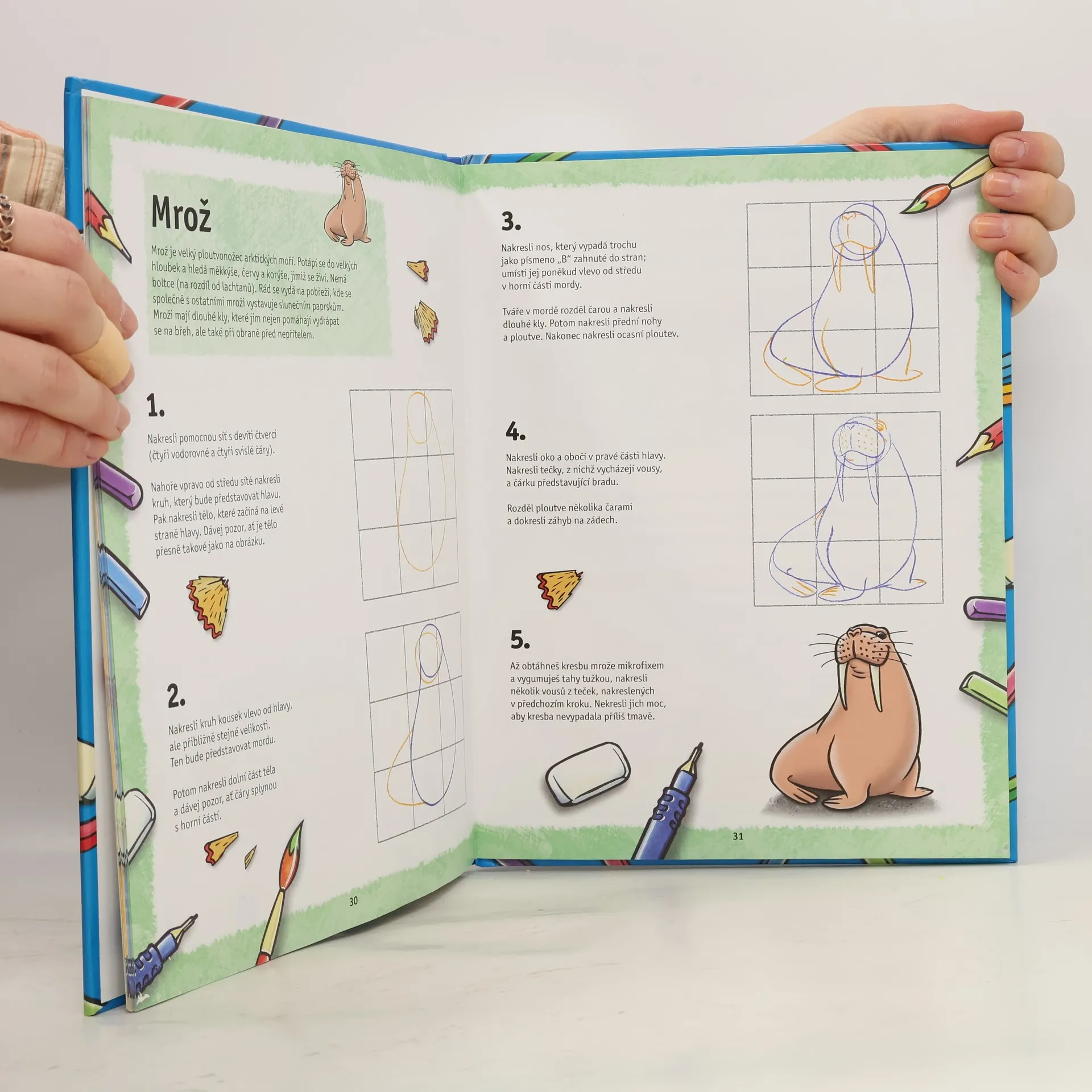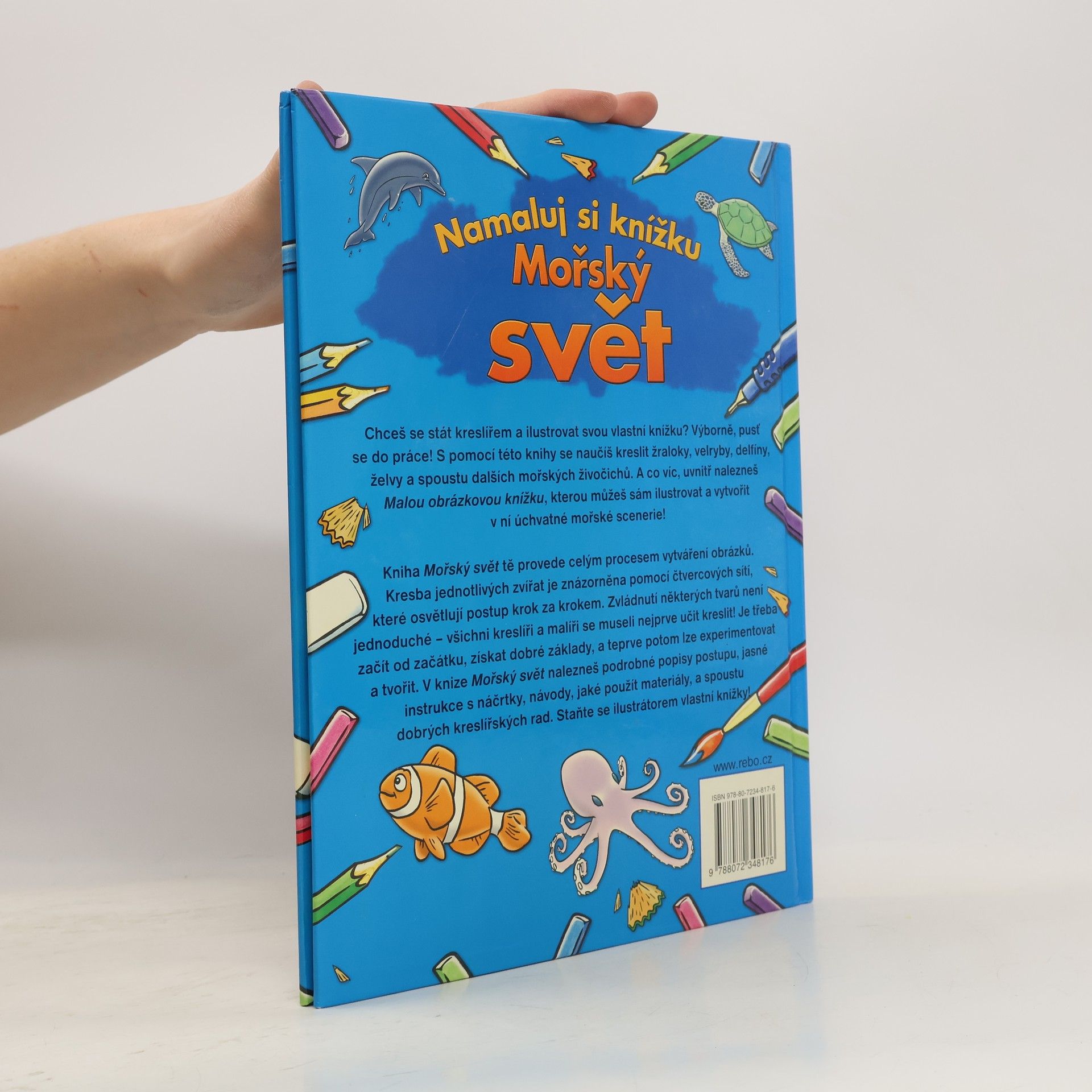 Výborně, pusť se do práce! S pomocí této knihy se naučíš kreslit žraloky, velryby, delfíny, želvy a spoustu dalších mořských živočichů. A co víc, uvnitř nalezneš Malou obrázkovou knížku, kterou můžeš sám ilustrovat a vytvořit v ní úchvatné mořské scenérie. Chceš se stát kreslířem a ilustrovat svou vlastní knížku?