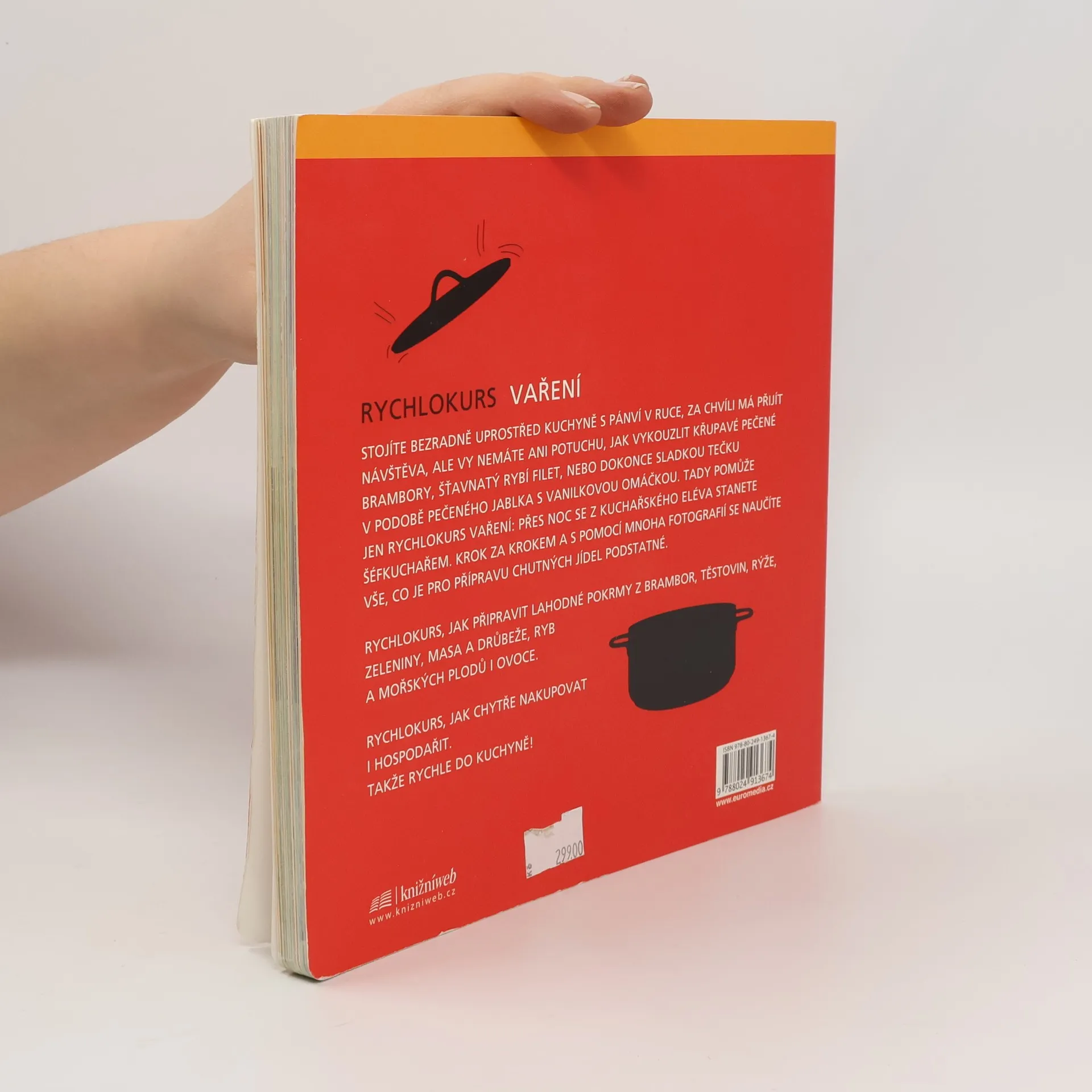Rychlokurs vaření Stojíte bezradně uprostřed kuchyně s pánví v ruce, za chvíli má přijít návštěva, ale vy nemáte ani potuchu, jak vykouzlit křupavé pečené brambory, šťavnatý rybí filet, nebo dokonce sladkou tečku v podobě pečeného jablka s vanilkovou omáčkou. Tady pomůže jen Rychlokurs vaření: přes noc se z kuchařského eléva stanete šéfkuchařem. Krok za krokem a s pomocí mnoha fotografií se naučíte vše, co je pro přípravu chutných jídel podstatné. Rychlokurs, jak připravit lahodné pokrmy z brambor, těstovin, rýže, zeleniny, masa a drůbeže, ryb a mořských plodů i ovoce. Rychlokurs, jak chytře nakupovat i hospodařit Takže rychle do kuchyně!