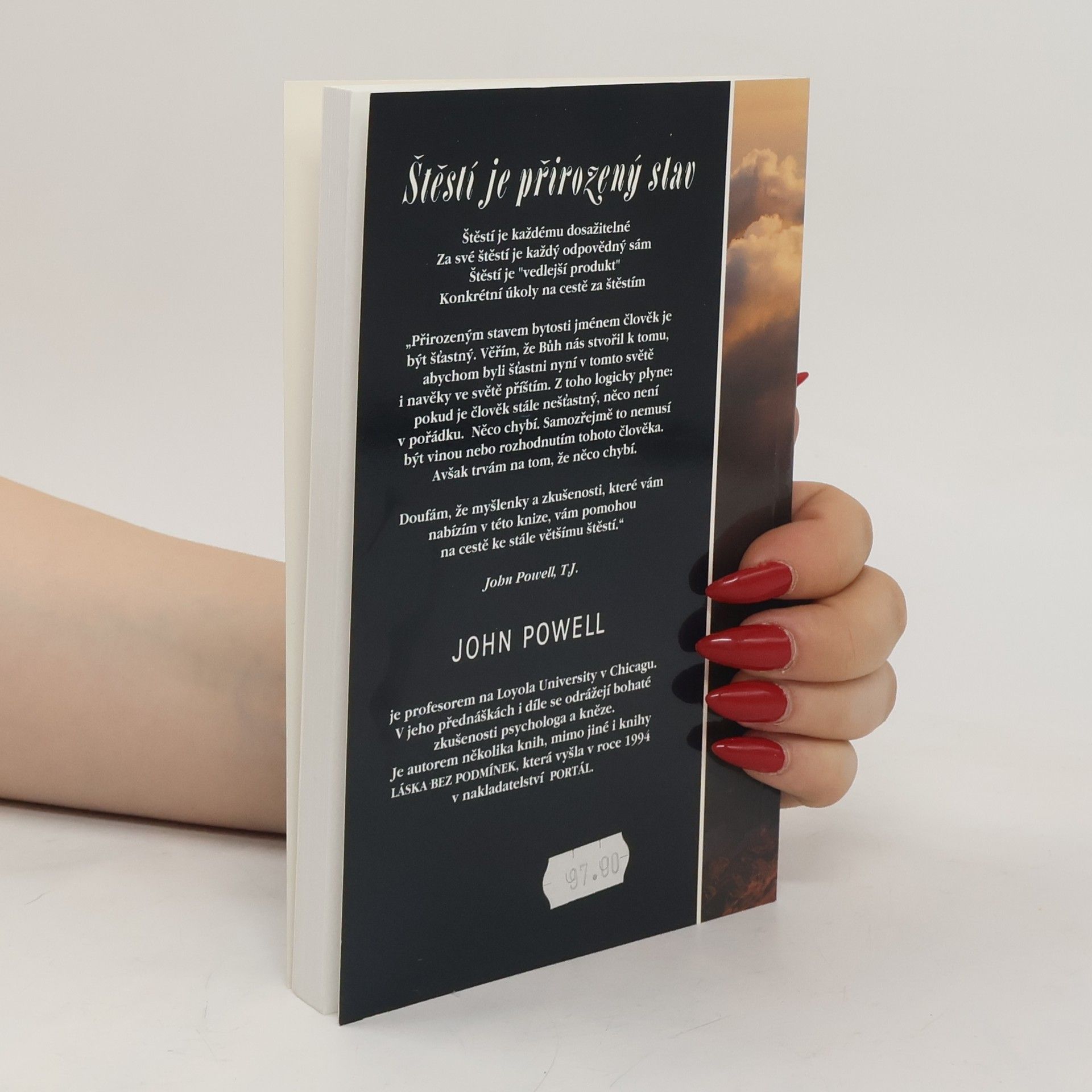 „Přirozeným stavem bytosti jménem člověk je být šťastný. Věřím, že Bůh nás stvořil k tomu, abychom byli šťastní nyní v tomto světě i navěky ve světě příštím. Z toho logicky plyne: Pokud je člověk stále nešťastný, něco není v pořádku. Něco chybí.