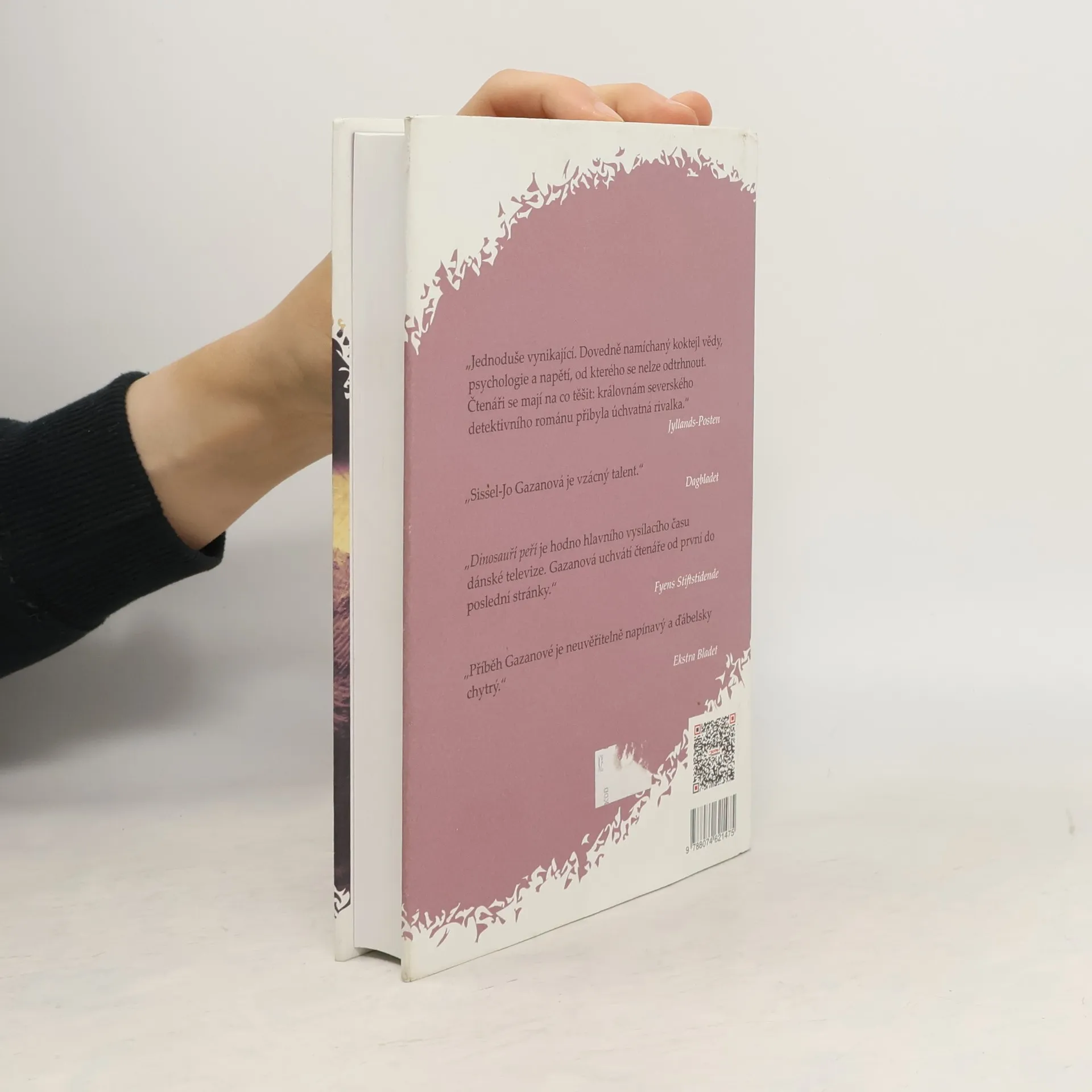 Nejlepší dánská krimi posledního desetiletí o rodičích, dětech a tajemstvích, která jim ztrpčují život. Anna se zlobí. Na svou matku, na život, na svou diplomovou práci a taky na svého vedoucího práce, který se podle ní chová už půl roku „nemožně“. Ale je nalezen mrtev a vše nasvědčuje tomu, že se mu někdo snažil pomstít. Nebyla to Anna? Kriminalista Søren chce Anně uvěřit, pokud mu pomůže rozkrýt hrůzné okolnosti vraždy a nahlédnout do světa přírodovědců, kteří jsou hnáni touhou po moci a slávě a pro svůj osobní prospěch jsou ochotni obětovat téměř cokoliv. Anna se ocitá ve víru událostí, které dlouhými nitkami souvislostí zabíhají hluboko k podstatě její diplomové práce o vývoji dinosaurů a ještě hlouběji ke kořenům jejího a Sørenova osobního života. Dinosauří peří je kriminální román z vědeckého prostředí, milostný příběh a psychologické drama zároveň. Román byl vyhodnocen jako nejlepší dánský kriminální román posledního desetiletí – cena Zlatý sekáček na maso.