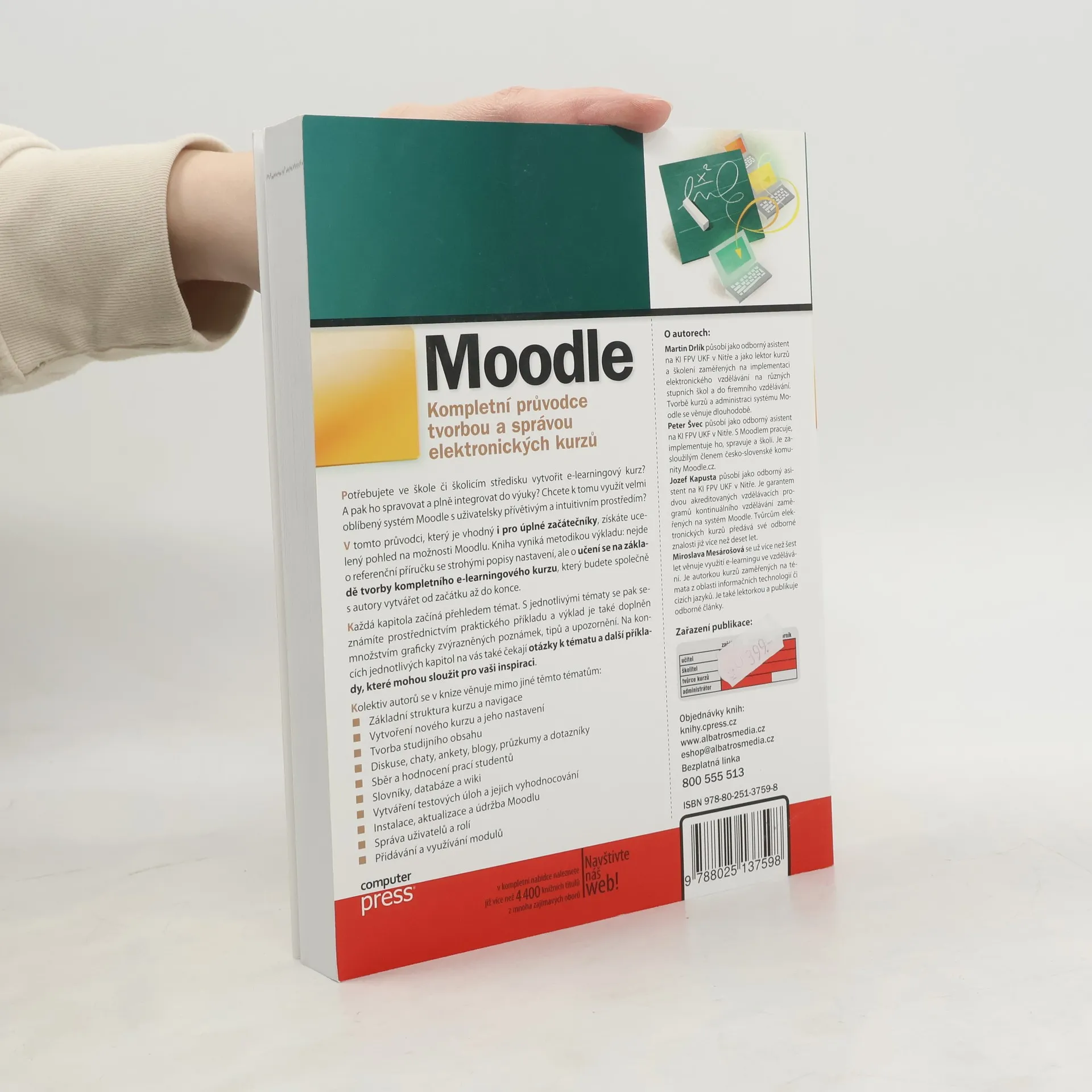 Potřebujete ve škole či školicím středisku vytvořit e-learningový kurz? A pak ho spravovat a plně integrovat do výuky? Chcete k tomu využít velmi oblíbený systém Moodle s uživatelsky přívětivým a intuitivním prostředím? V tomto průvodci, který je vhodný i pro úplné začátečníky, získáte ucelený pohled na možnosti Moodlu. Kniha vyniká svou metodikou výkladu: nejde o referenční příručku se strohými popisy nastavení, ale o učení se na základě tvorby kompletního e-learningového kurzu.