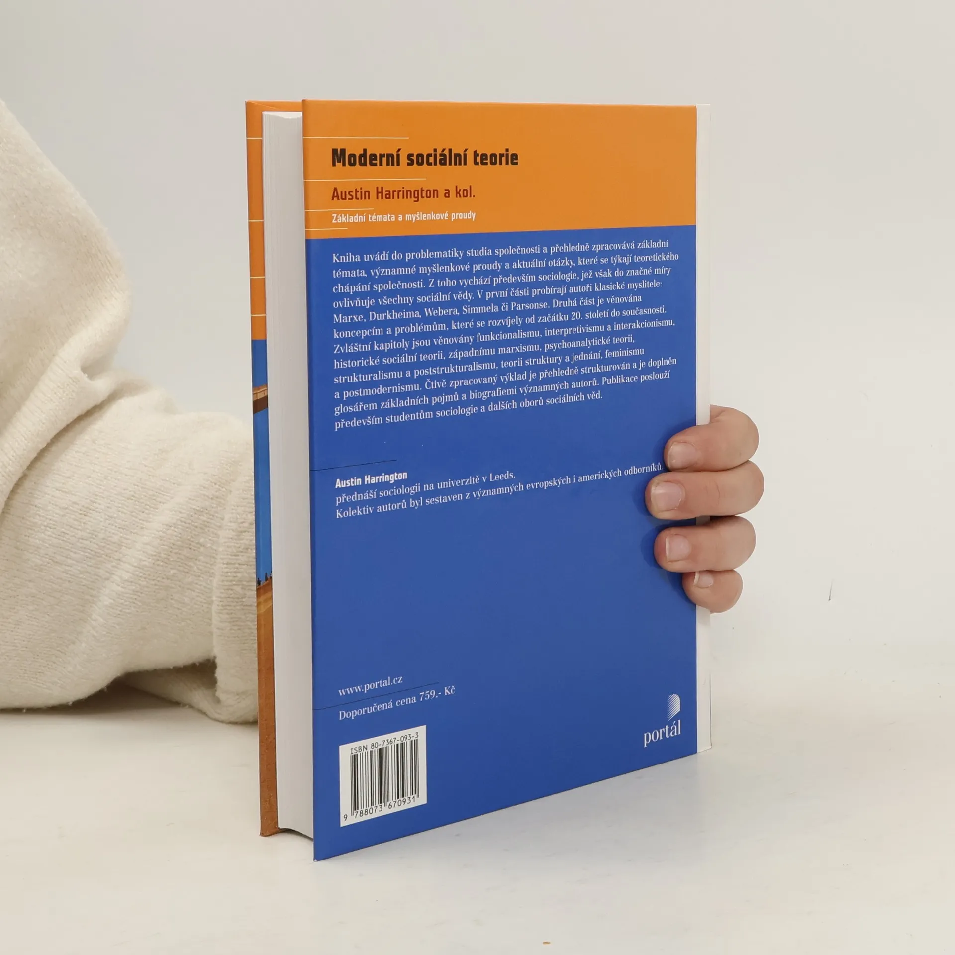 Kniha uvádí do problematiky studia společnosti a přehledně zpracovává základní témata, významné myšlenkové proudy a aktuální otázky, které se týkají teoretického chápání společnosti, z něhož vychází především sociologie, jež však do značné míry ovlivňuje všechny sociální vědy. V první části probírají autoři klasické myslitele: Marxe, Durkheima, Webera, Simmela či Parsonse. Druhá část je věnována koncepcím a problémům, které se rozvíjely od začátku 20. století do současnosti. Zvláštní kapitoly jsou věnovány funkcionalismu, interpretivismu a interakcionismu, historické sociální teorii, západnímu marxismu, psychoanalytické teorii, strukturalismu a poststrukturalismu, teorii struktury a jednání, feminismu a postmodernismu. Čtivě zpracovaný výklad je přehledně strukturován a je doplněn glosářem základních pojmů a biografiemi významných autorů. Publikace poslouží především studentům sociologie a dalších oborů sociálních věd.
