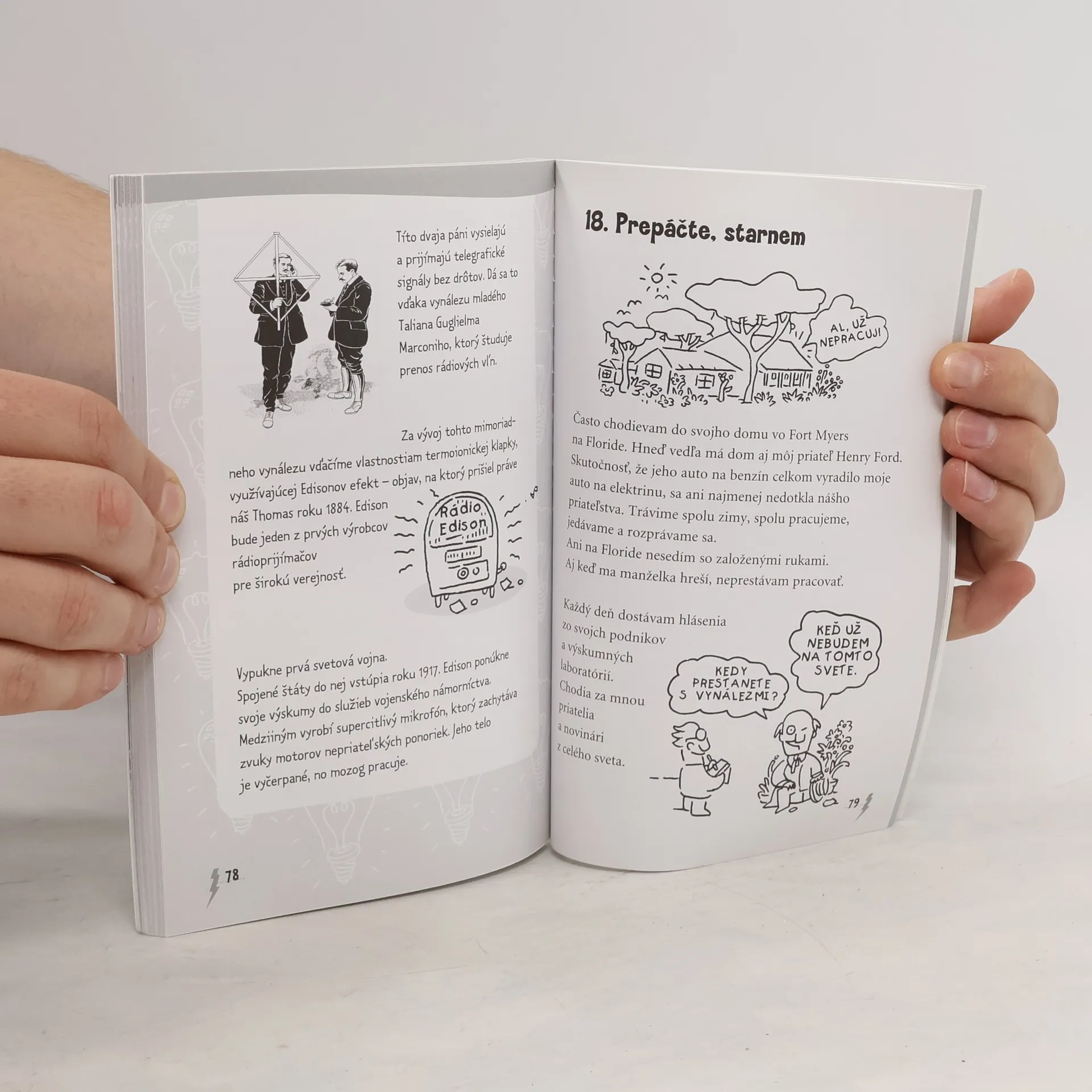 Thomas Alva Edison dostal prívlastok "muž, ktorý vynašiel budúcnosť". Vďaka nemu sa dostala elektrická energia do domov a tovární, on vynašiel žiarovku a prišiel na spôsob, ako reprodukovať hlas i hudbu. Jeho vynálezy rádia a telefónu zmenili spôsob života miliónov ľudí. Komiksové ilustrácie a humorný štýl autorovho rozprávania poľudšťujú tohoto génia, ktorého životopis sa číta ako najnapínavejšia detektívka.