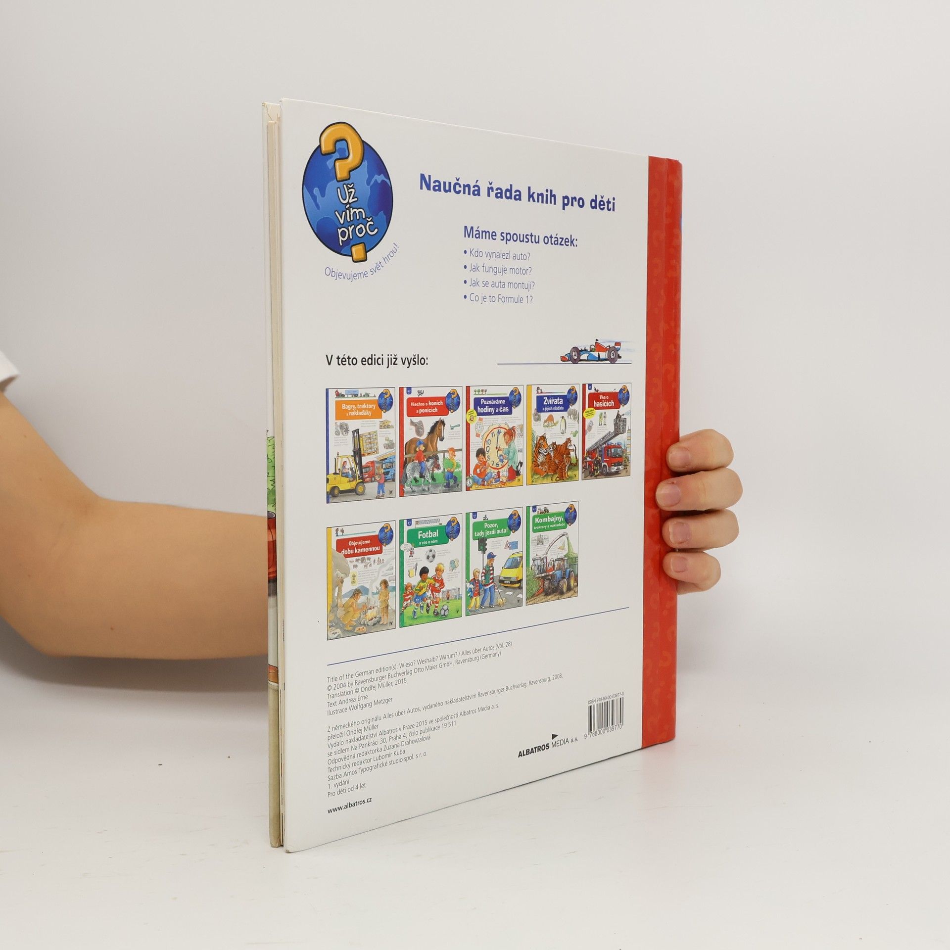 Jak funguje motor? Kdy vzniklo první auto? A jak se auto vlastně vyrábí? Odpovědi na tyto a mnohé další otázky, se kterými si rodiče často nevědí rady, se děti dovědí z obrázkové knihy Vše o autech z oblíbené edice Už vím proč?. Auta jsou nedílnou součastí každodenního života dospělých i dětí. O to zajímavější je vědět, jak takové auto vzníká nebo jak ho správně zabezpečit. Malí i velcí fanoušci aut budou mít možnost podívat se do výrodní haly nebo si vyzkoušet tzv. crashtest. Kniha Vše o autech vysvětluje zábavně a hravě, proces výroby auta od prvního návrhu po hotový vůz. Nechybějí ani kapitoly o historii automobilu nebo o dopravě.