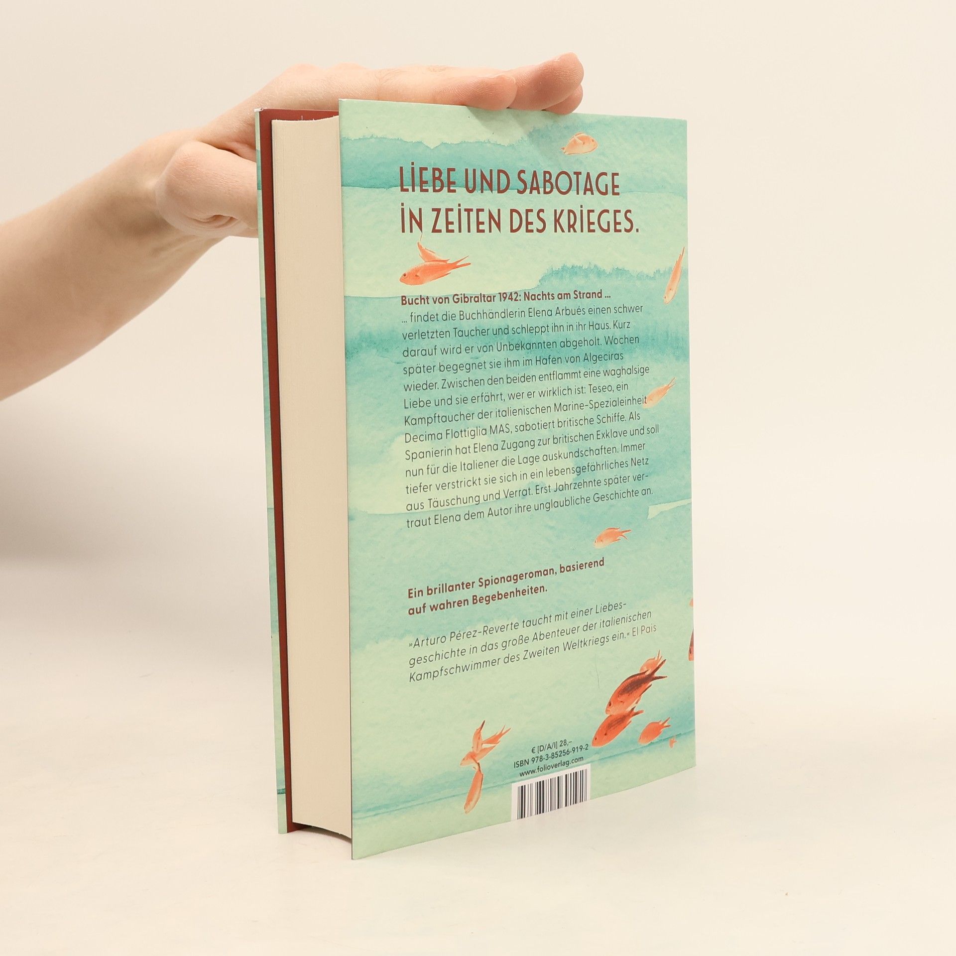 Liebe und Sabotage in Zeiten des Krieges: Ein brillanter Spionageroman, basierend auf wahren Begebenheiten. Bucht von Gibraltar 1942: Nachts am Strand findet die Buchhändlerin Elena Arbués einen schwer verletzten Taucher und schleppt ihn in ihr Haus. Kurz darauf wird er von Unbekannten abgeholt. Wochen später begegnet sie ihm im Hafen von Algeciras wieder. Zwischen den beiden entflammt eine waghalsige Liebe und sie erfährt, wer er wirklich ist: Teseo, ein Kampfschwimmer der italienischen Marine-Spezialeinheit X MAS, sabotiert britische Schiffe. Als Spanierin hat Elena Zugang zur britischen Exklave und soll nun für die Italiener die Lage auskundschaften. Immer tiefer verstrickt sie sich in ein lebensgefährliches Netz aus Täuschung und Verrat. Erst Jahrzehnte später vertraut Elena dem Autor ihre unglaubliche Geschichte an.